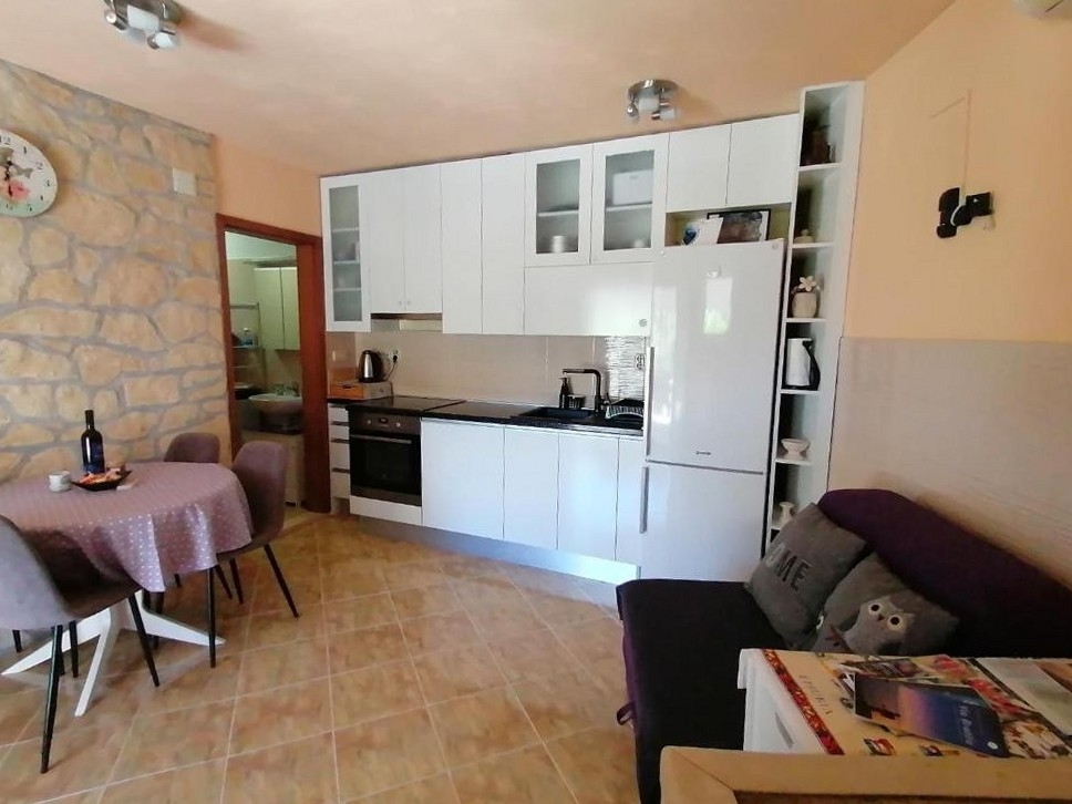 Apartment can accommodate 2 guests. Beds are situated in 1 sleeping rooms, within 28m2. Guests can use a private terrace to enjoy the warm summer evenings. Food can be prepared using barbecue which is shared with other guests too. This accommodation unit welcomes pets at no additional costs. Other guests or hosts pass through the terrace of the booked accommodation unit. INCLUDED IN THE PRICE: tourist tax, final cleaning, air-conditioning, parking, internet, pets, baby cot, iron, ironing board, hairdryer. The availability of additional services for your chosen dates of stay, as well as their prices (if none are listed) must be checked ahead of time. Any additional services not shown in the price calculation are payable directly to the property owner and only if used by the visitor.