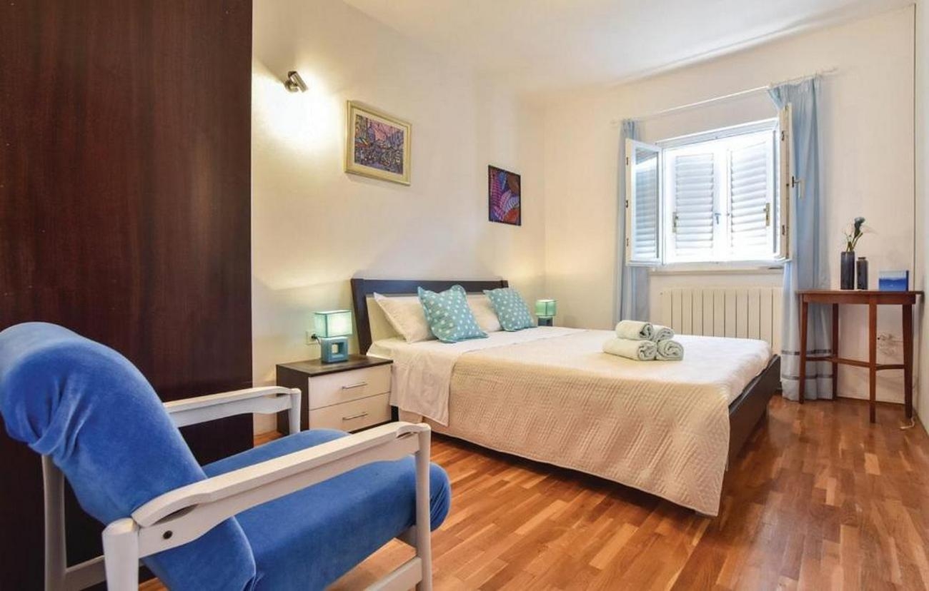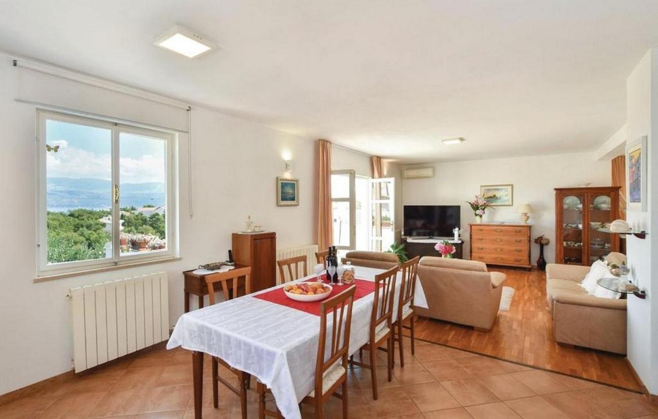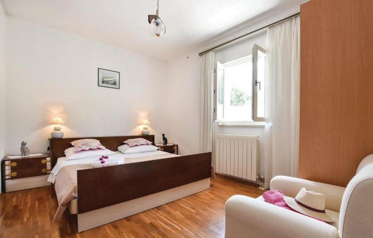 Apartment can accommodate 8 guests. Beds are situated in 3 sleeping rooms, but also in the living room, within 113m2. Guests can use a private terrace to enjoy the warm summer evenings. The apartment offers the sea view. Food can be prepared using barbecue which is shared with other guests too. Shared pool is on disposal during stay. This accommodation unit welcomes pets at an additional charge. INCLUDED IN THE PRICE: tourist tax, final cleaning, air-conditioning, central heating, pool, parking, internet, laundry, baby cot, iron, hairdryer. OBLIGATORY ADDITIONAL COSTS: short stay fee (surcharge depending on a number of booked nights: 30% - 1, 20% - 2, 10% - 3). OPTIONAL ADDITIONAL COSTS: pets (€5.00 per night). The availability of additional services for your chosen dates of stay, as well as their prices (if none are listed) must be checked ahead of time. Any additional services not shown in the price calculation are payable directly to the property owner and only if used by the visitor. Discounts to the base price: free day 28=25 (for stays of 28 days or more, we give you 3 days free of charge for the stay until 31122026).