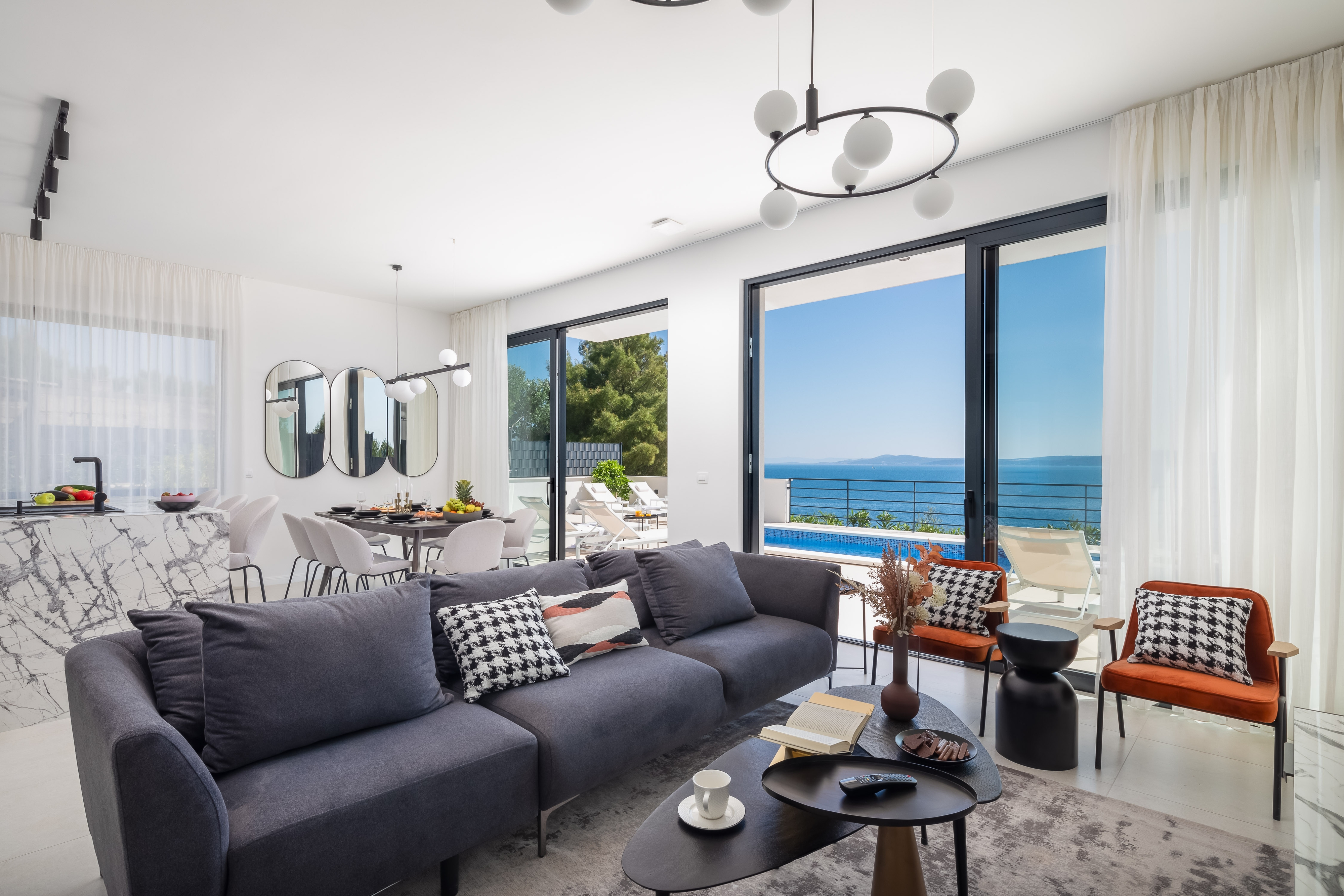 House can accommodate 10 guests. Beds are situated in 5 sleeping rooms, within 230m2. Guests can use a private terrace to enjoy the warm summer evenings. The house offers the sea view. For full enjoyment and relaxation there is a private barbecue for this accommodation guests only. During stay, there is a private pool for relaxation and pleasure. This accommodation unit welcomes pets at an additional charge. INCLUDED IN THE PRICE: tourist tax, final cleaning, air-conditioning, pool, parking, internet, baby cot, iron, ironing board, hairdryer. OPTIONAL ADDITIONAL COSTS: pets (€20.00 per night). The availability of additional services for your chosen dates of stay, as well as their prices (if none are listed) must be checked ahead of time. Any additional services not shown in the price calculation are payable directly to the property owner and only if used by the visitor. Discounts to the base price: free day 14=13 (for reservations of 14 or more days you get one free day for the stay until 31122026).