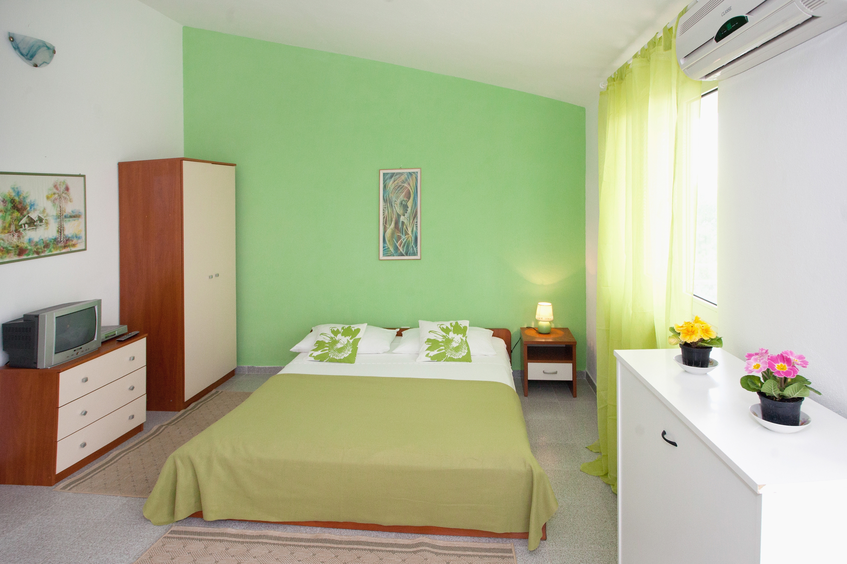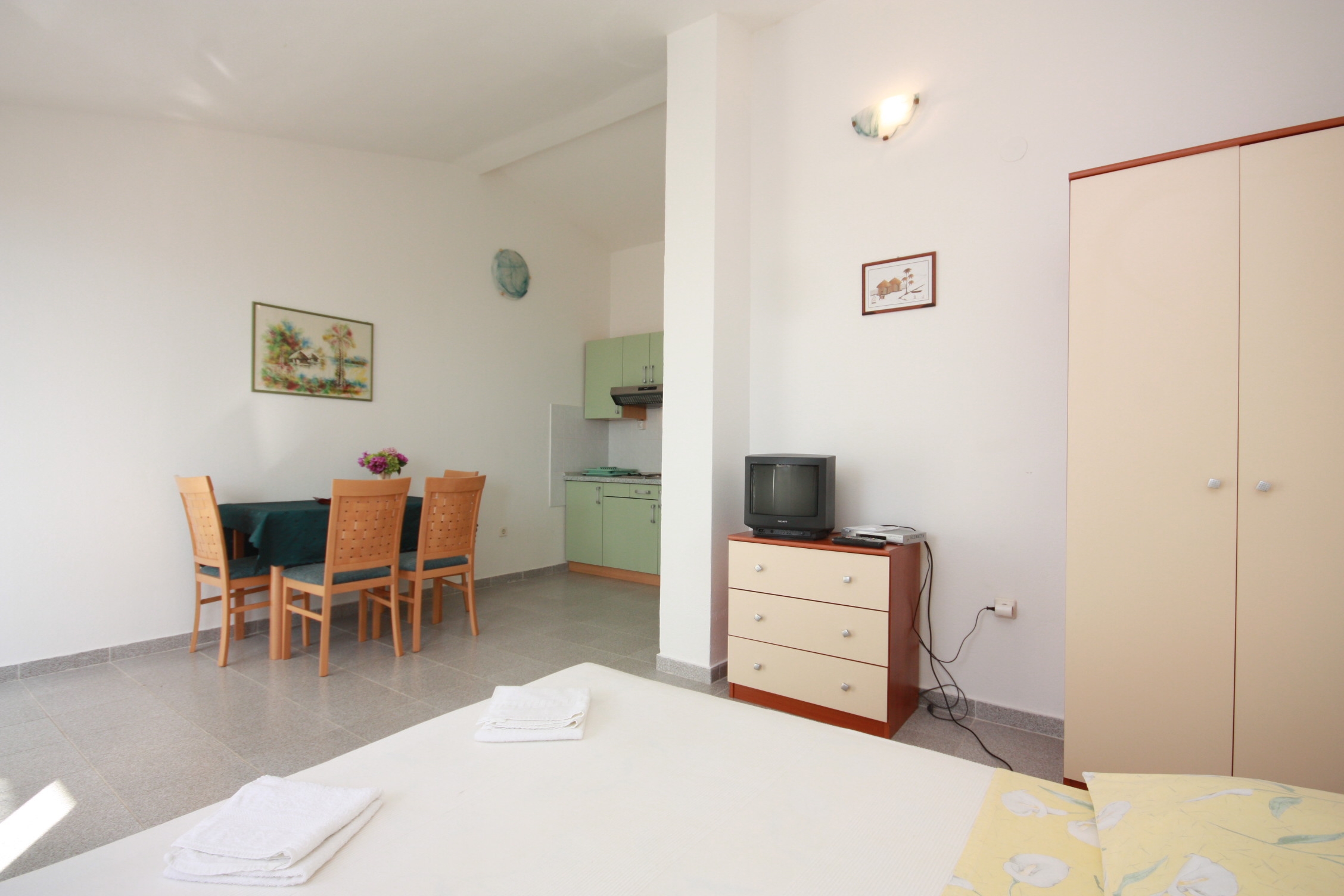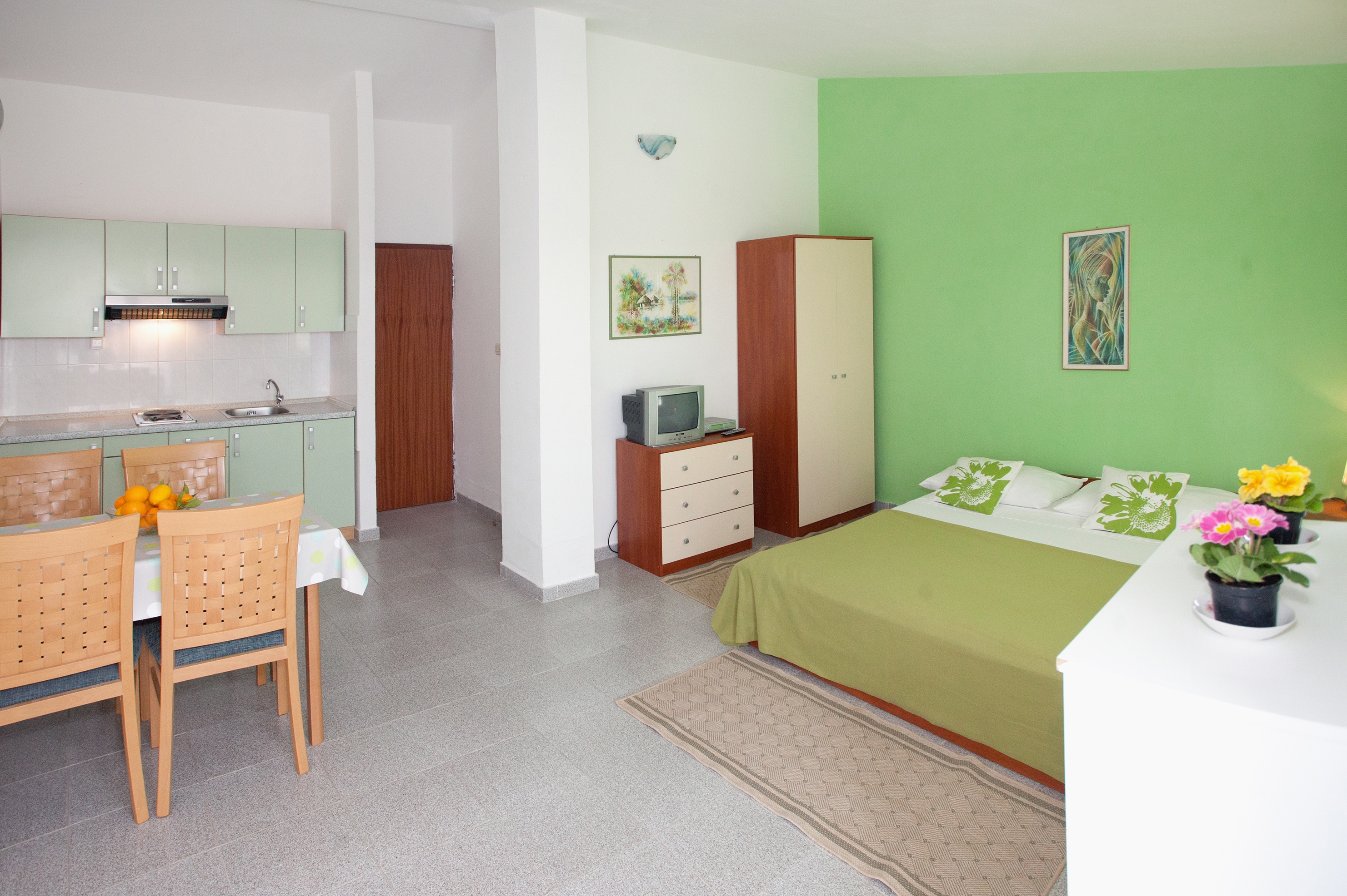 Studio flat can accommodate 3 guests. Beds are situated in 1 sleeping rooms, within 25m2. Guests can use a private terrace to enjoy the warm summer evenings. The studio offers the sea view. Food can be prepared using barbecue which is shared with other guests too. INCLUDED IN THE PRICE: tourist tax, final cleaning, air-conditioning, parking, internet, baby cot. OPTIONAL ADDITIONAL COSTS: additional bed (€5.00 per night). The availability of additional services for your chosen dates of stay, as well as their prices (if none are listed) must be checked ahead of time. Any additional services not shown in the price calculation are payable directly to the property owner and only if used by the visitor.