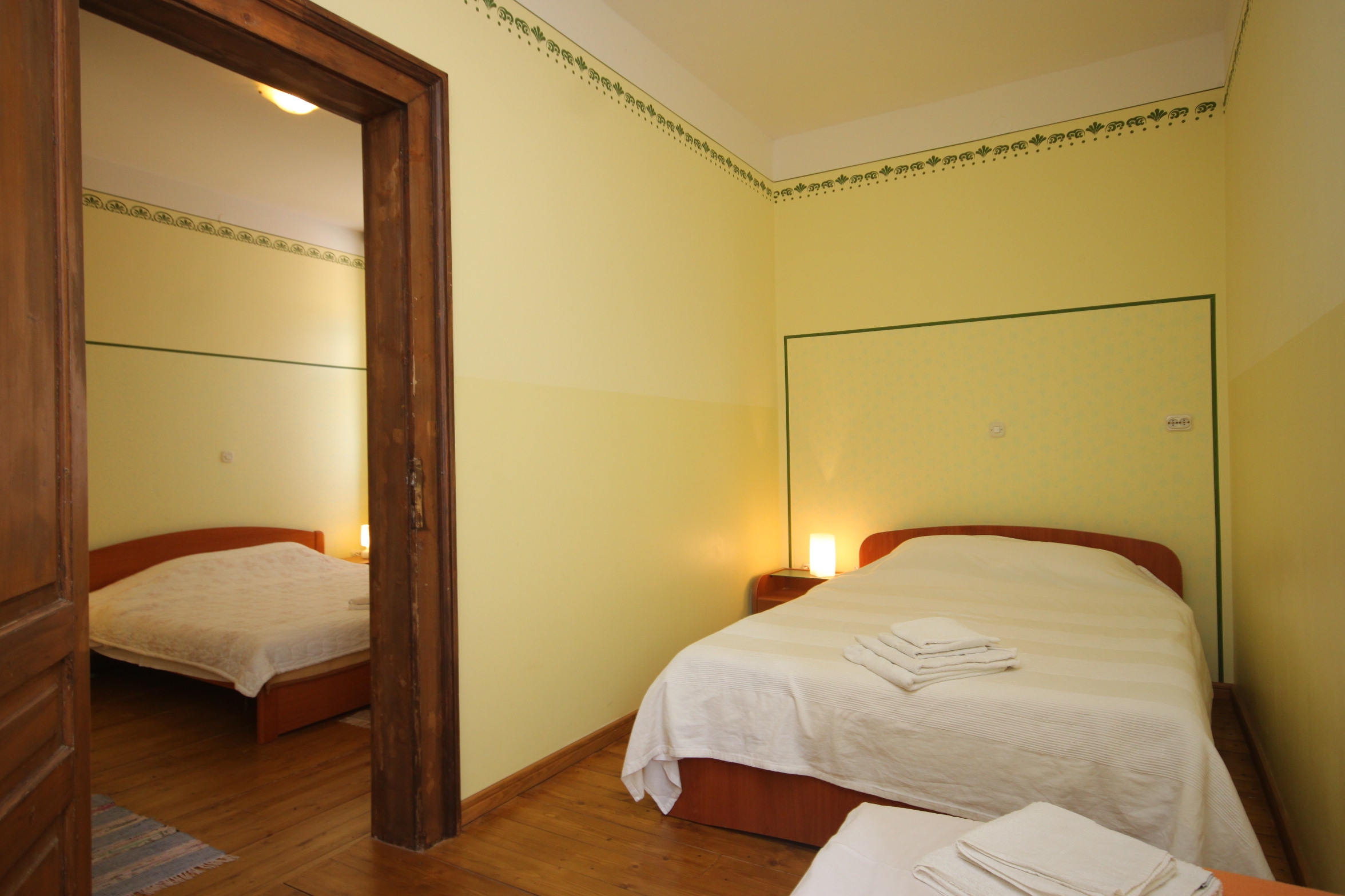 Room can accommodate 4 guests. Beds are situated in 2 sleeping rooms, within 28m2. This accommodation unit welcomes pets at an additional charge. There is no balcony or terrace in the reserved accommodation unit. Reserved accommodation unit is a room with its own bathroom and there is no usage of kitchen. In this accommodation unit bedroom leads to other rooms. INCLUDED IN THE PRICE: breakfast, final cleaning, parking, internet, laundry, baby cot. OBLIGATORY ADDITIONAL COSTS: tourist tax (adults €0.93 - €1.80 nightperson, discount for children aged 12 - 17). OPTIONAL ADDITIONAL COSTS: half-board (€20.00, a 50% discount for children aged 4 to 12 years, Children up to age 4 free of charge), pets (€10.00 per night). The availability of additional services for your chosen dates of stay, as well as their prices (if none are listed) must be checked ahead of time. Any additional services not shown in the price calculation are payable directly to the property owner and only if used by the visitor. Discounts to the base price: free day 14=13 (for reservations of 14 or more days you get one free day for the stay until 31122026).