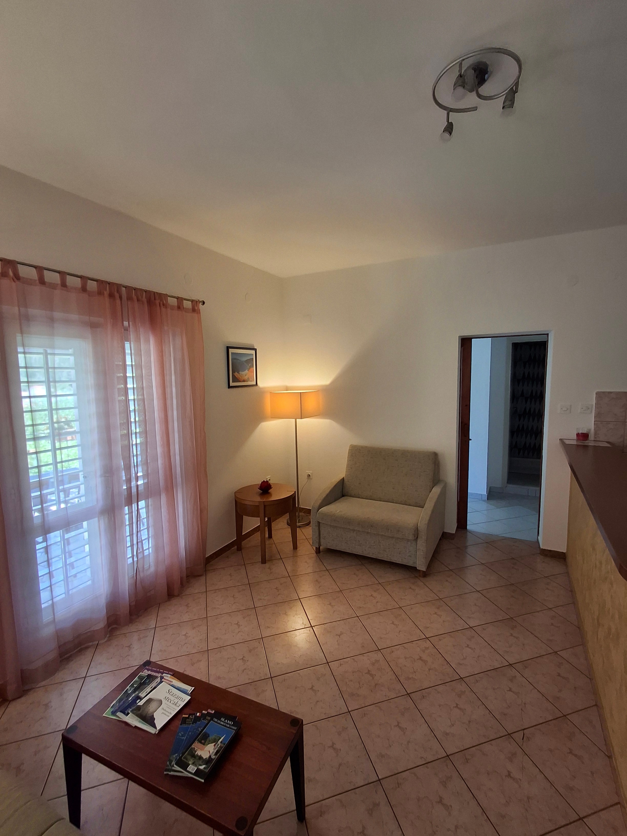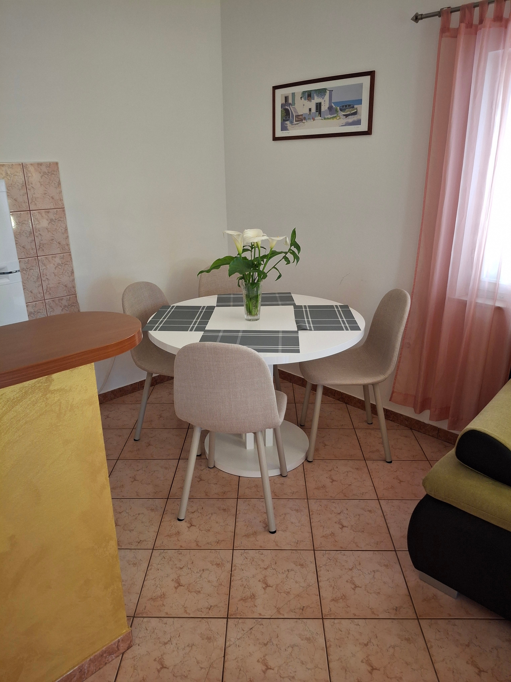 Apartment can accommodate 6 guests. Beds are situated in 2 sleeping rooms, but also in the living room, within 63m2. Guests can use a private terrace to enjoy the warm summer evenings. The apartment offers the sea view. Food can be prepared using barbecue which is shared with other guests too. INCLUDED IN THE PRICE: tourist tax, final cleaning, air-conditioning, parking, internet, laundry, iron, ironing board, hairdryer, portable barbecue. The availability of additional services for your chosen dates of stay, as well as their prices (if none are listed) must be checked ahead of time. Any additional services not shown in the price calculation are payable directly to the property owner and only if used by the visitor.