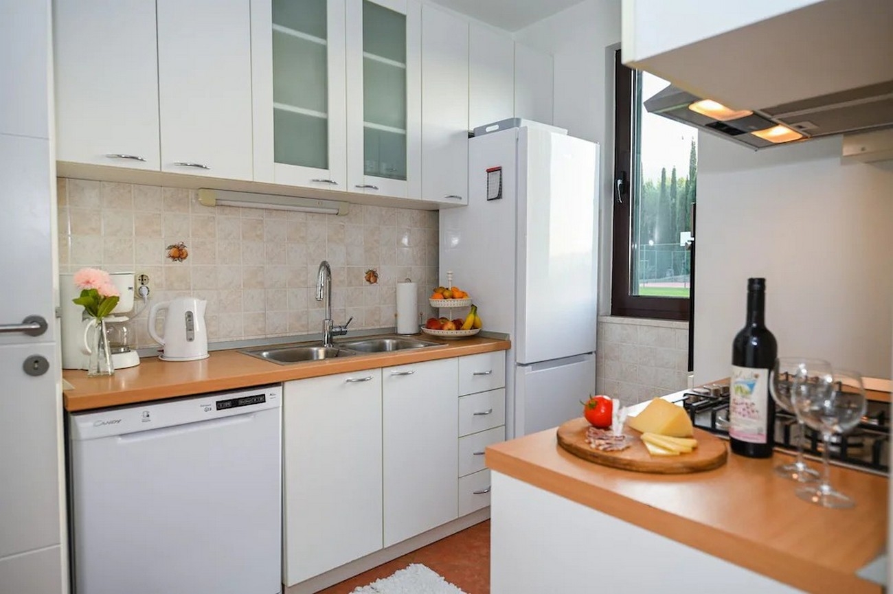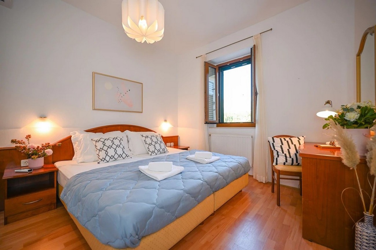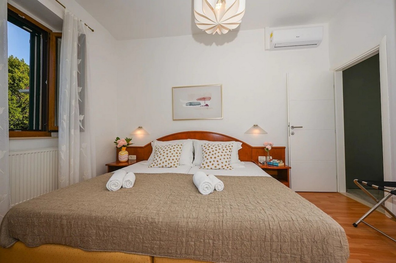 House can accommodate 8 guests. Beds are situated in 3 sleeping rooms, but also in the living room, within 112m2. Guests can use a private terrace to enjoy the warm summer evenings. For full enjoyment and relaxation there is a private barbecue for this accommodation guests only. During stay, there is a private pool for relaxation and pleasure. INCLUDED IN THE PRICE: tourist tax, final cleaning, air-conditioning, central heating, pool, parking, internet, baby cot, iron, ironing board, hairdryer. OPTIONAL ADDITIONAL COSTS: boat (€70.00 per night). The availability of additional services for your chosen dates of stay, as well as their prices (if none are listed) must be checked ahead of time. Any additional services not shown in the price calculation are payable directly to the property owner and only if used by the visitor. Discounts to the base price: free day 21=19 (for reservations of 21 or more days you get 2 free days for the stay until 31122026).