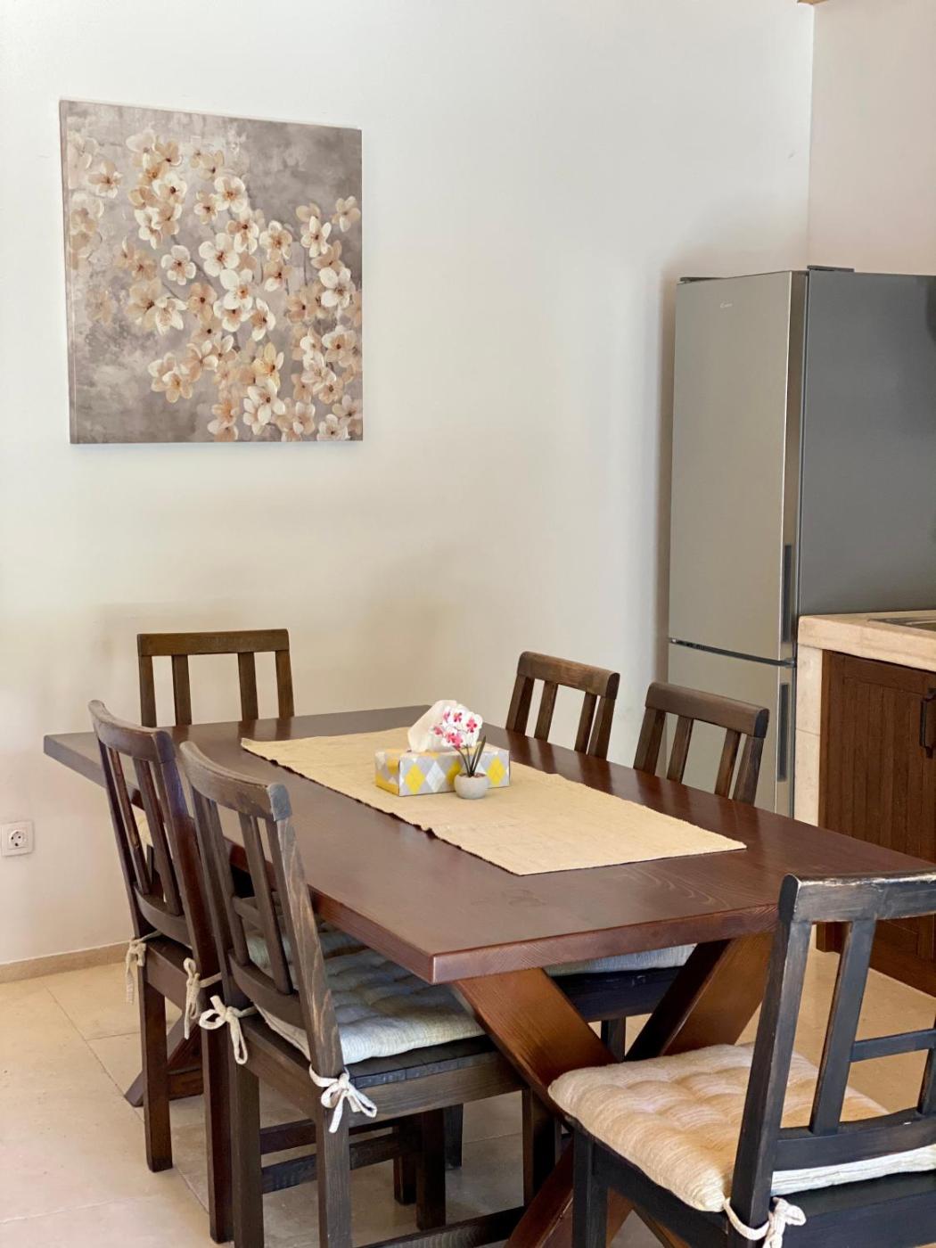 The villa is fitted with 2 bedrooms, 3 bathrooms, bed linen, towels, a flat-screen TV with satellite channels, a dining area, a fully equipped kitchen, and a terrace with sea views. A private entrance leads gueststhe villa,they can enjoy some wine or champagne and fruits. The property has an outdoor dining area.