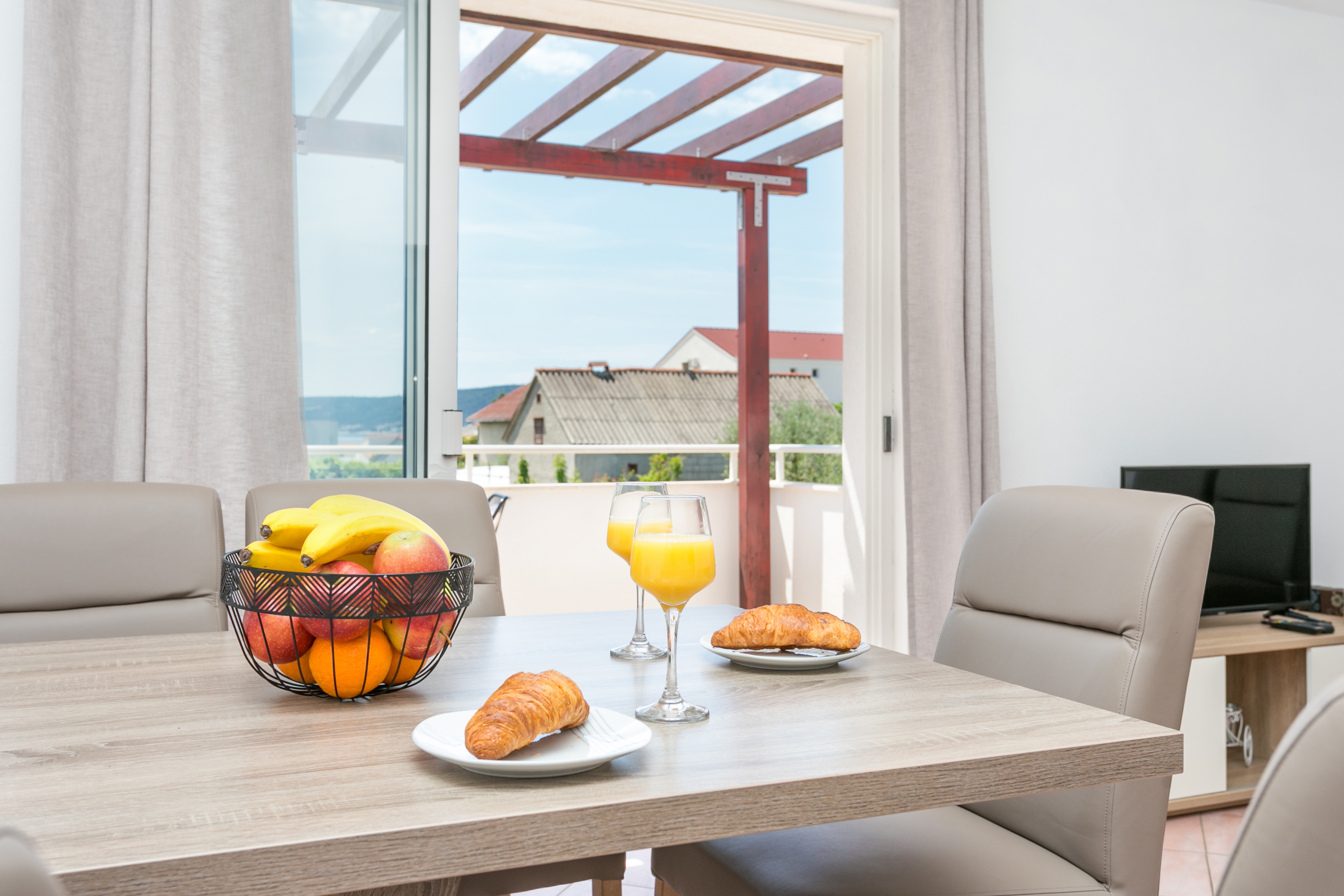 Apartment can accommodate 7 guests. Beds are situated in 3 sleeping rooms, but also in the living room, within 86m2. Guests can use a private terrace to enjoy the warm summer evenings. The apartment offers the sea view. Food can be prepared using barbecue which is shared with other guests too. INCLUDED IN THE PRICE: tourist tax, final cleaning, air-conditioning, parking, internet, baby cot, iron, ironing board, hairdryer. The availability of additional services for your chosen dates of stay, as well as their prices (if none are listed) must be checked ahead of time. Any additional services not shown in the price calculation are payable directly to the property owner and only if used by the visitor. Discounts to the base price: free day 14=13 (for reservations of 14 or more days you get one free day for the stay until 31122026).