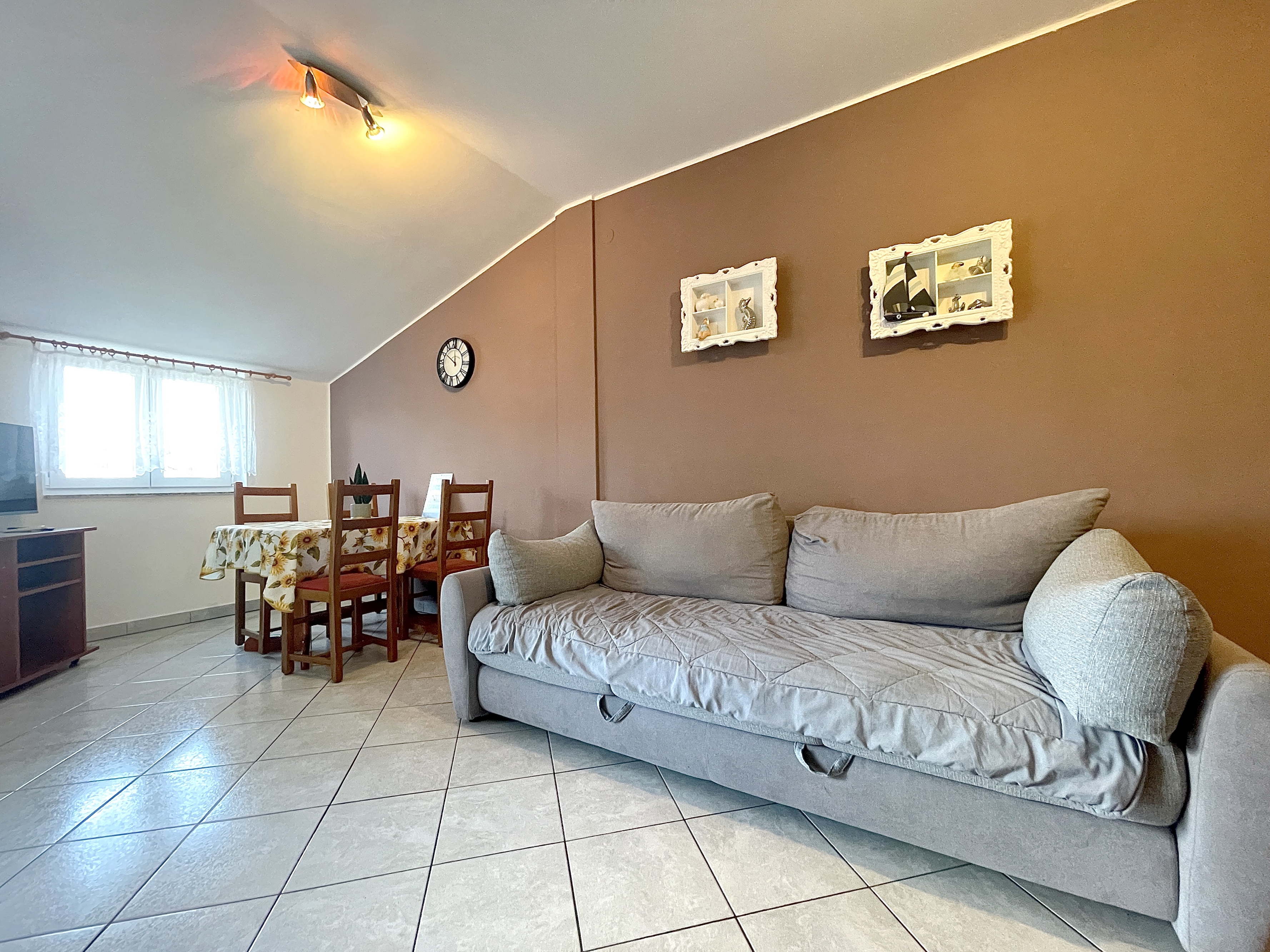 Apartment can accommodate 5 guests. Beds are situated in 2 sleeping rooms, but also in the living room, within 55m2. Guests can use a private balcony to enjoy the warm summer evenings. Food can be prepared using barbecue which is shared with other guests too. INCLUDED IN THE PRICE: tourist tax, final cleaning, air-conditioning, parking, internet. OBLIGATORY ADDITIONAL COSTS: short stay fee (surcharge depending on a number of booked nights: 30% - 1, 20% - 2, 10% - 3). The availability of additional services for your chosen dates of stay, as well as their prices (if none are listed) must be checked ahead of time. Any additional services not shown in the price calculation are payable directly to the property owner and only if used by the visitor.