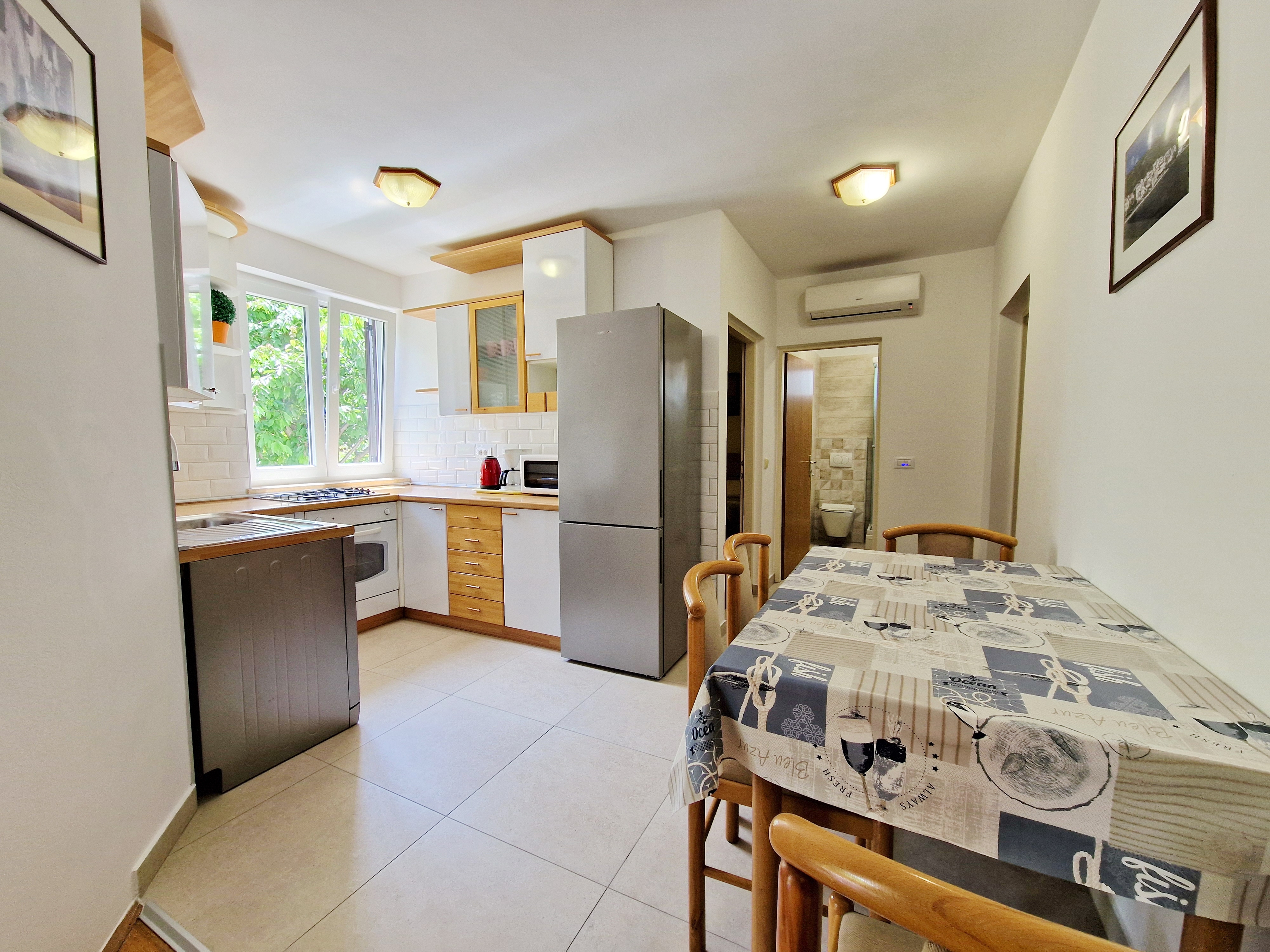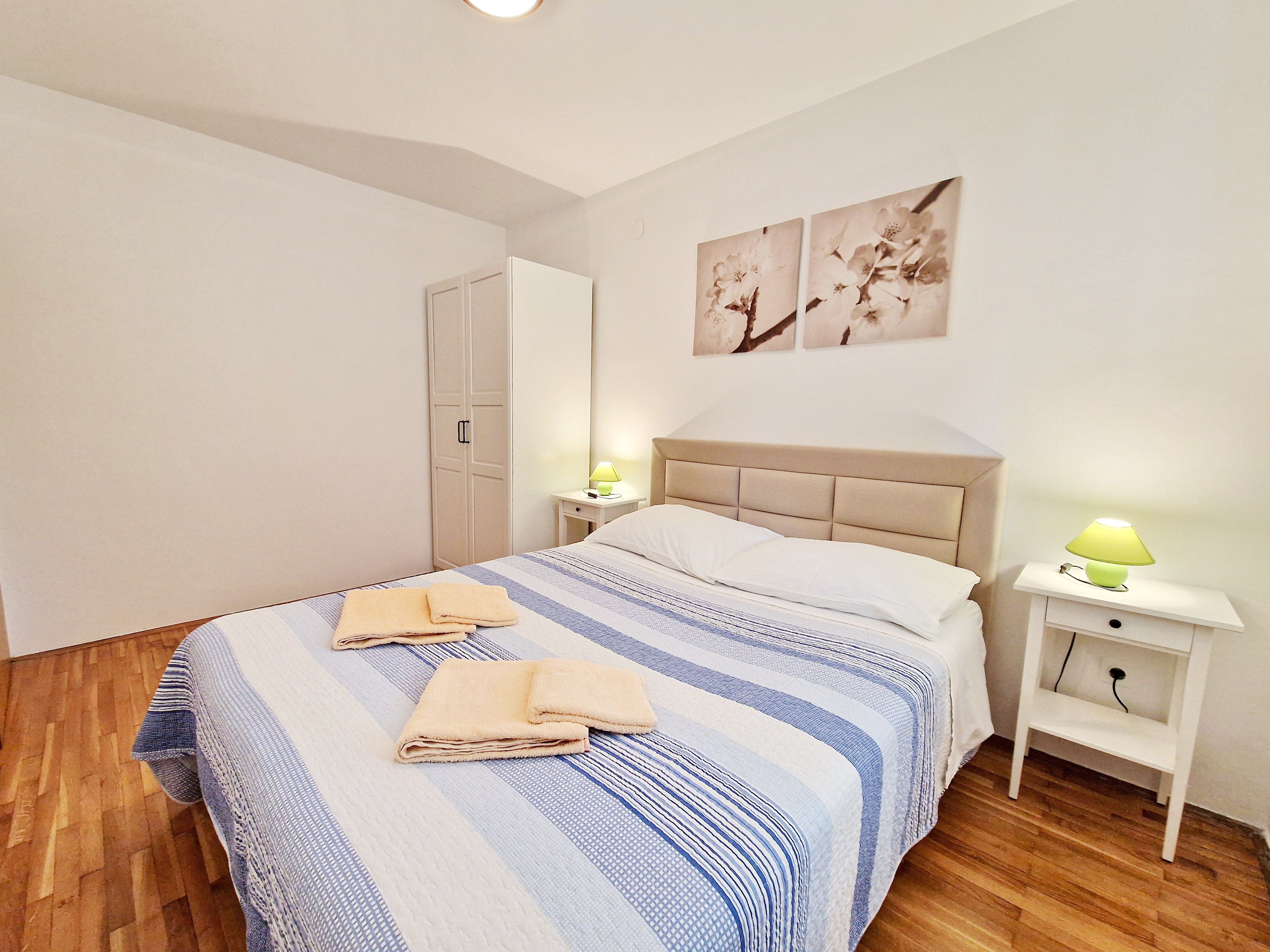 Apartment can accommodate 4 guests. Beds are situated in 2 sleeping rooms, within 52m2. Guests can use a private terrace to enjoy the warm summer evenings. Food can be prepared using barbecue which is shared with other guests too. INCLUDED IN THE PRICE: tourist tax, final cleaning, air-conditioning, parking, internet. OBLIGATORY ADDITIONAL COSTS: short stay fee (surcharge depending on a number of booked nights: 30% - 1, 20% - 2, 10% - 3). The availability of additional services for your chosen dates of stay, as well as their prices (if none are listed) must be checked ahead of time. Any additional services not shown in the price calculation are payable directly to the property owner and only if used by the visitor.