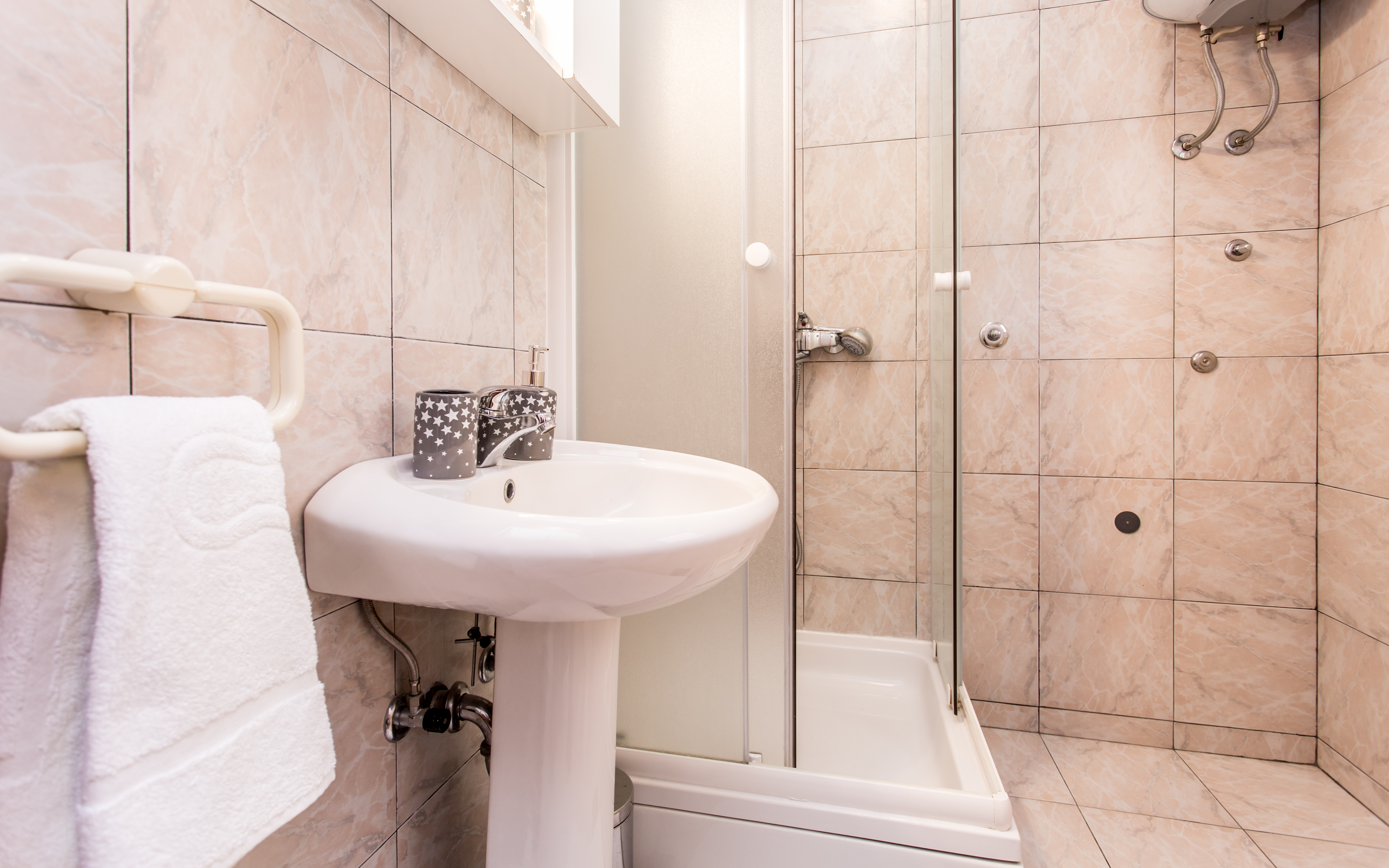 Apartment can accommodate 3 guests. Beds are situated in 1 sleeping rooms, but also in the dining room, within 26m2. Guests can use a private terrace to enjoy the warm summer evenings. Food can be prepared using barbecue which is shared with other guests too. Shared pool is on disposal during stay. INCLUDED IN THE PRICE: tourist tax, final cleaning, air-conditioning, pool, parking, internet, iron, ironing board, hairdryer. The availability of additional services for your chosen dates of stay, as well as their prices (if none are listed) must be checked ahead of time. Any additional services not shown in the price calculation are payable directly to the property owner and only if used by the visitor.
