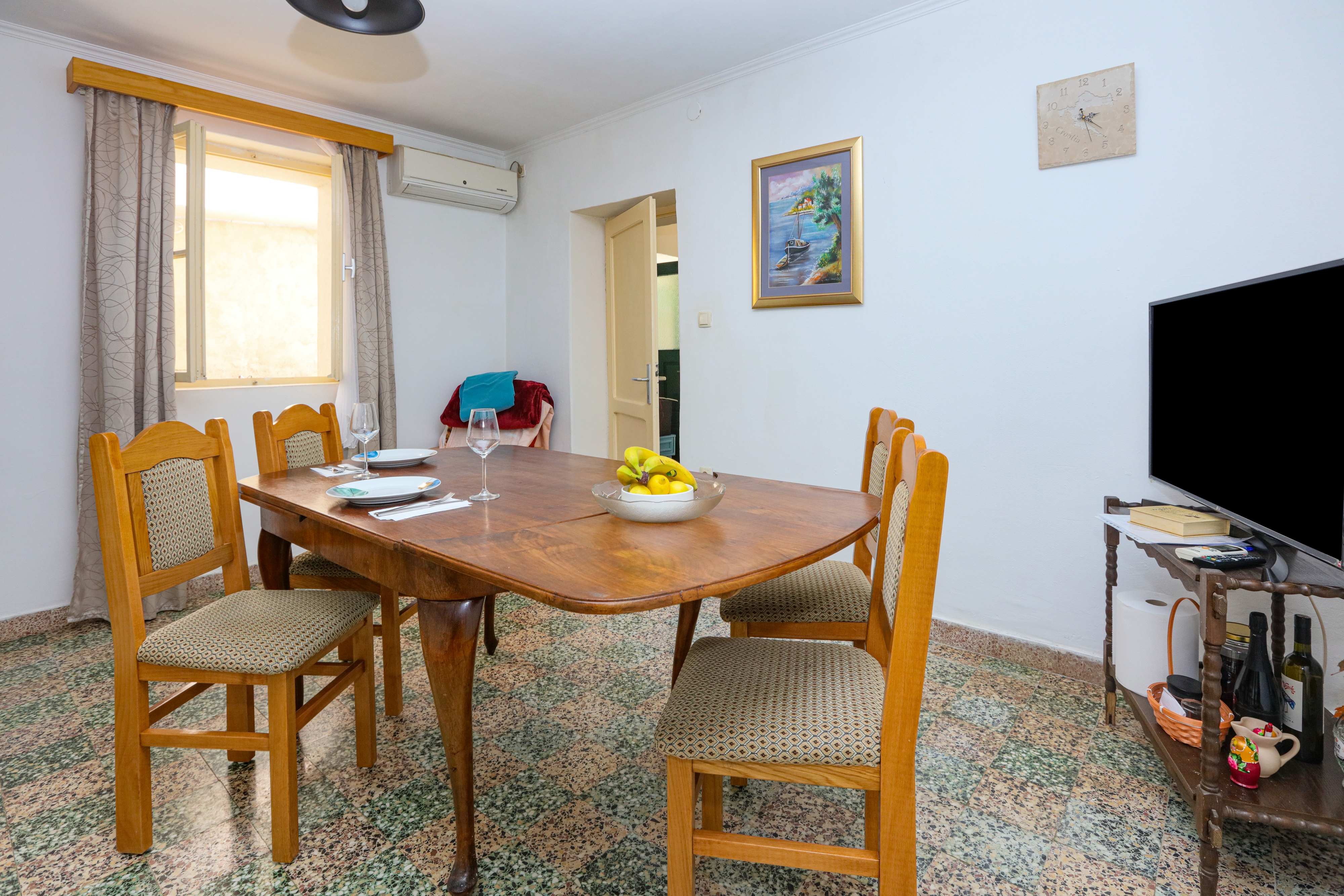 Apartment can accommodate 4 guests. Beds are situated in 1 sleeping rooms, but also in the living room, within 45m2. Guests can use a private terrace to enjoy the warm summer evenings. This accommodation unit welcomes pets at an additional charge. INCLUDED IN THE PRICE: tourist tax, final cleaning, air-conditioning, parking, internet, hairdryer. OBLIGATORY ADDITIONAL COSTS: short stay fee (surcharge depending on a number of booked nights: 30% - 1, 20% - 2, 10% - 3). OPTIONAL ADDITIONAL COSTS: pets (€6.00 per night). The availability of additional services for your chosen dates of stay, as well as their prices (if none are listed) must be checked ahead of time. Any additional services not shown in the price calculation are payable directly to the property owner and only if used by the visitor. Discounts to the base price: free day 14=13 (for reservations of 14 or more days you get one free day for the stay until 31122026).
