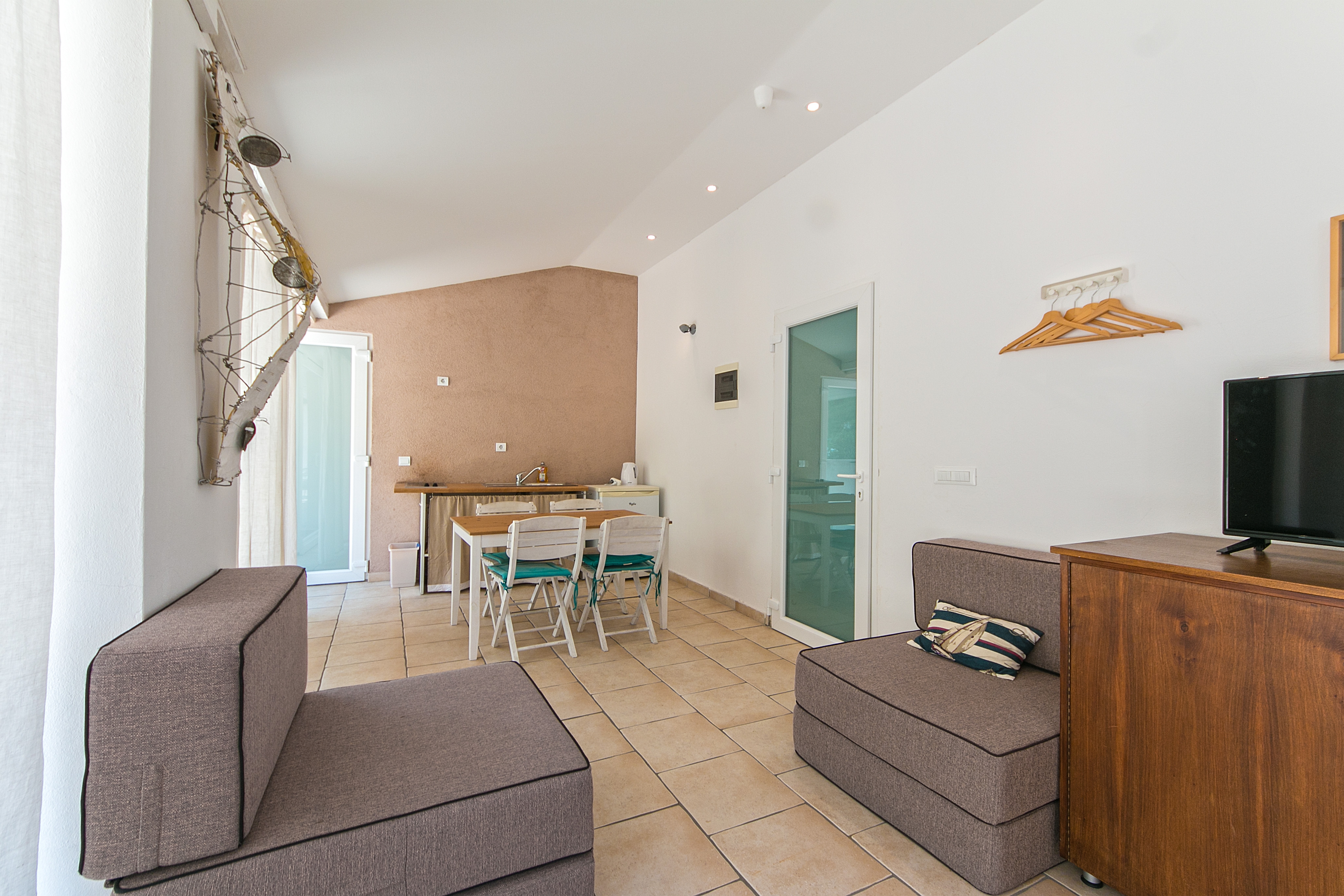 Studio flat can accommodate 3 guests. Beds are situated in 1 sleeping rooms, within 25m2. Guests can use a private terrace to enjoy the warm summer evenings. The studio offers the sea view. Food can be prepared using barbecue which is shared with other guests too. This accommodation unit welcomes pets at an additional charge. INCLUDED IN THE PRICE: tourist tax, final cleaning, air-conditioning, parking, internet, laundry, baby cot, additional bed, iron, ironing board, hairdryer, portable barbecue, sunshade, sunchairs. OBLIGATORY ADDITIONAL COSTS: short stay fee (surcharge depending on a number of booked nights: 30% - 1, 20% - 2, 10% - 3). OPTIONAL ADDITIONAL COSTS: pets (€5.00 per night). The availability of additional services for your chosen dates of stay, as well as their prices (if none are listed) must be checked ahead of time. Any additional services not shown in the price calculation are payable directly to the property owner and only if used by the visitor. Discounts to the base price: free day 14=13 (for reservations of 14 or more days you get one free day for the stay until 31122026).