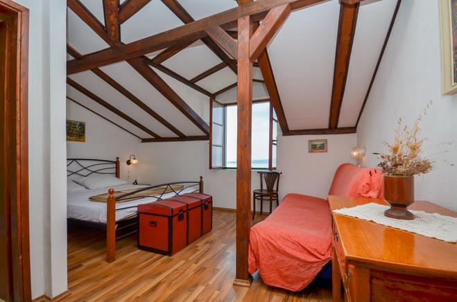 Apartment can accommodate 5 guests. Beds are situated in 2 sleeping rooms, within 46m2. The apartment offers the sea view. Food can be prepared using barbecue which is shared with other guests too. Reserved accommodation unit has a shared terrace. INCLUDED IN THE PRICE: tourist tax, final cleaning, air-conditioning, parking, internet, iron, ironing board, hairdryer. OPTIONAL ADDITIONAL COSTS: laundry (€5.00 washing). The availability of additional services for your chosen dates of stay, as well as their prices (if none are listed) must be checked ahead of time. Any additional services not shown in the price calculation are payable directly to the property owner and only if used by the visitor.