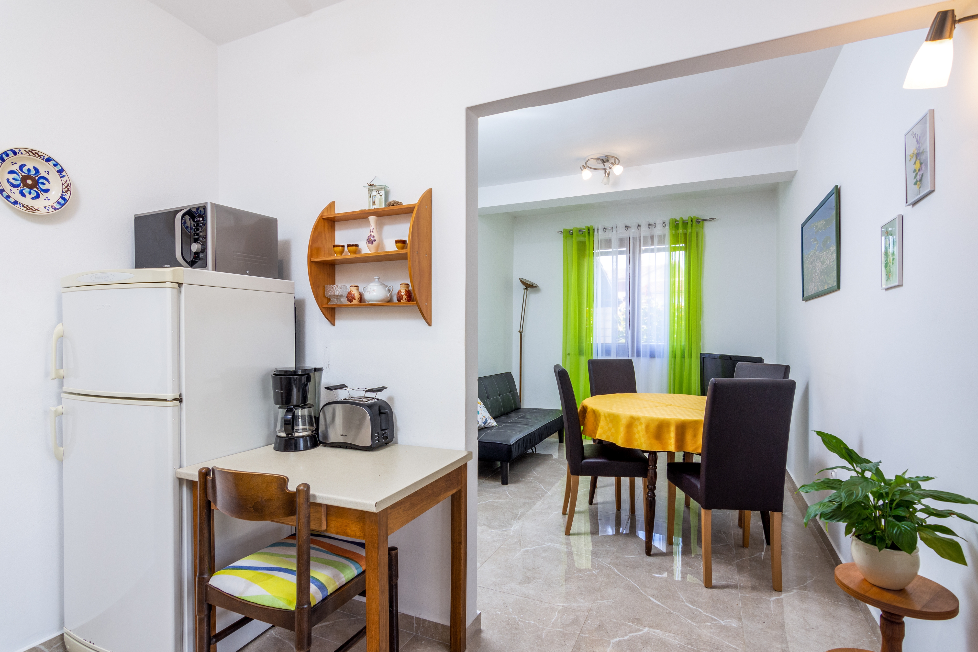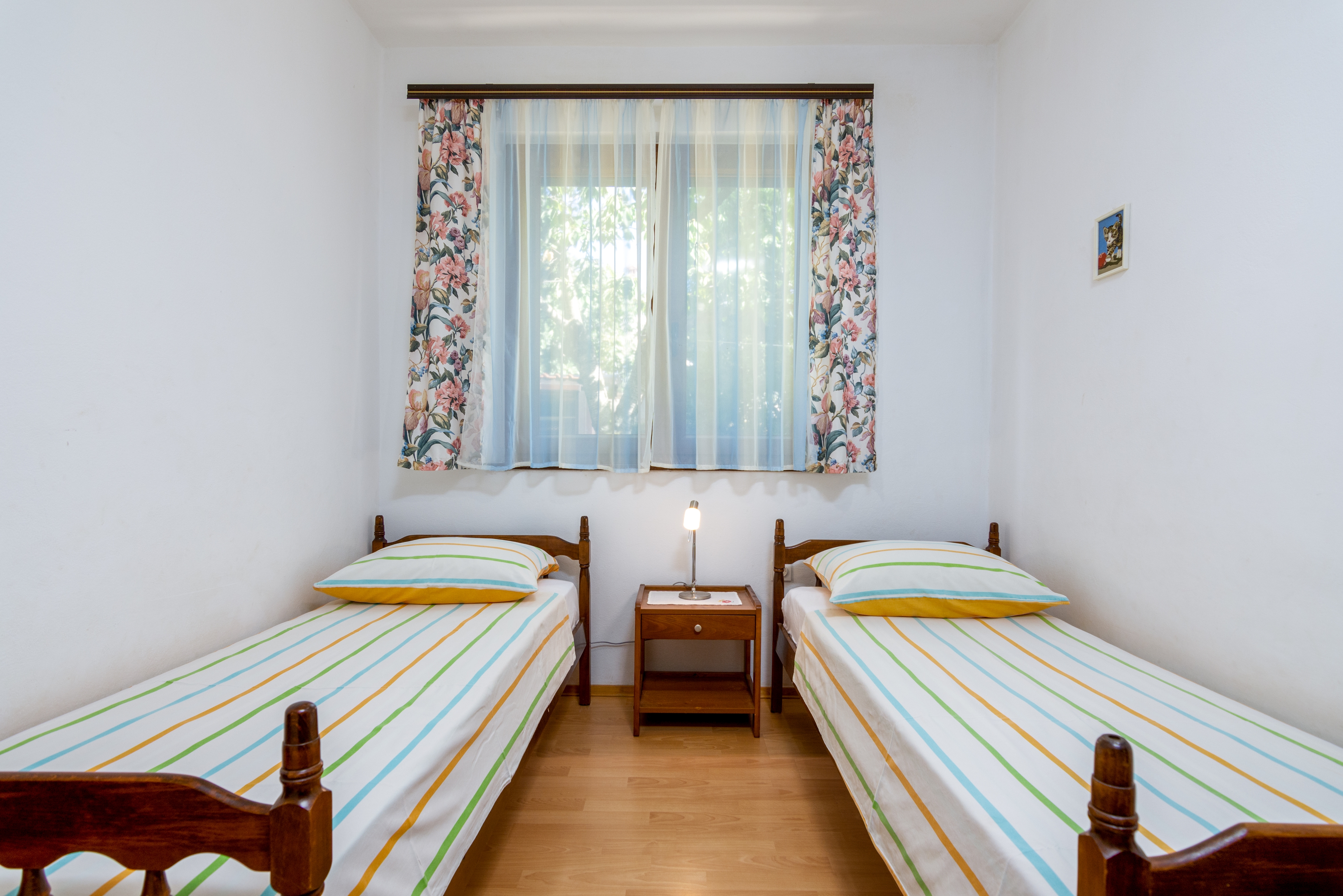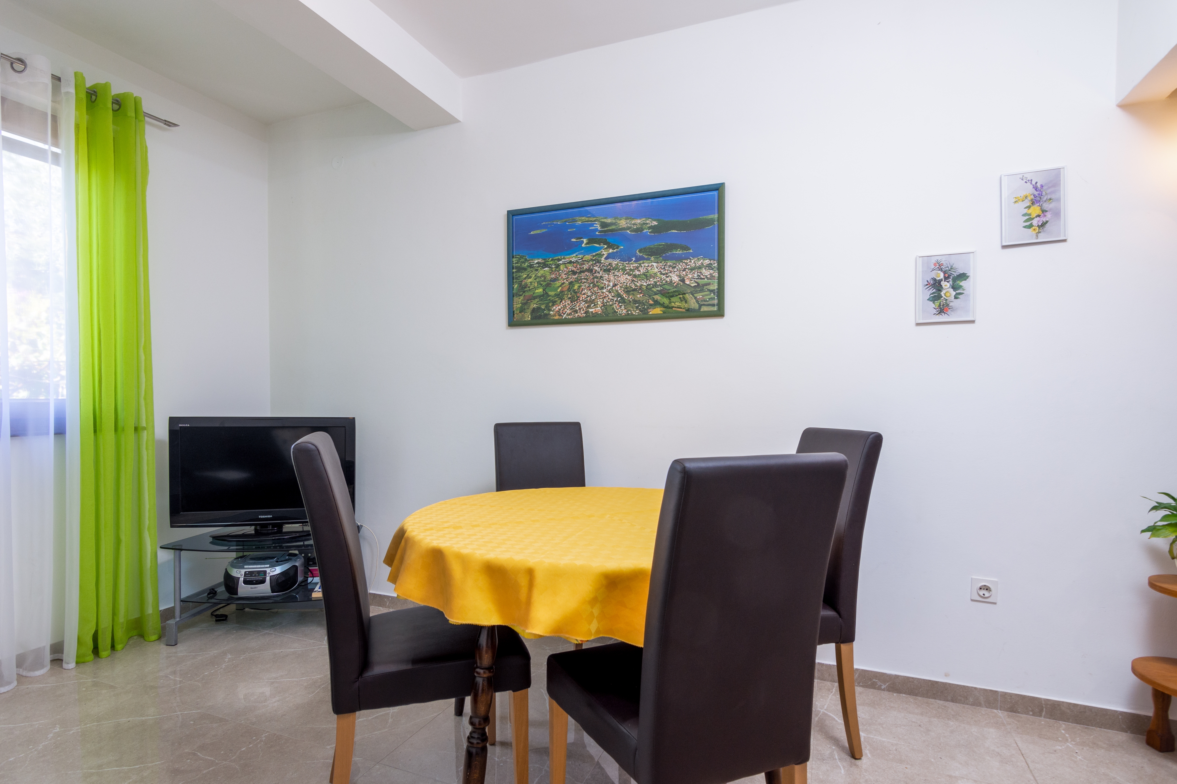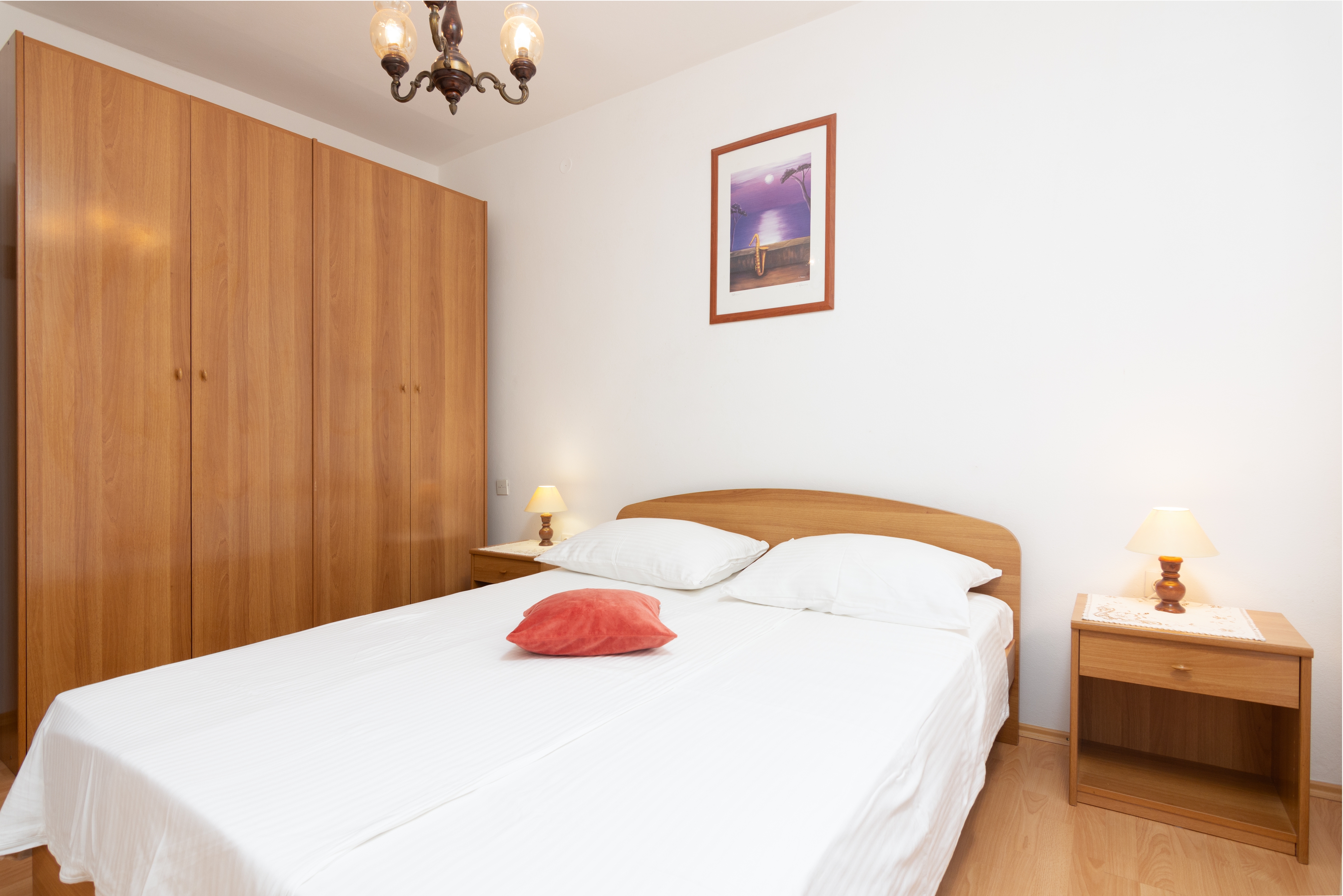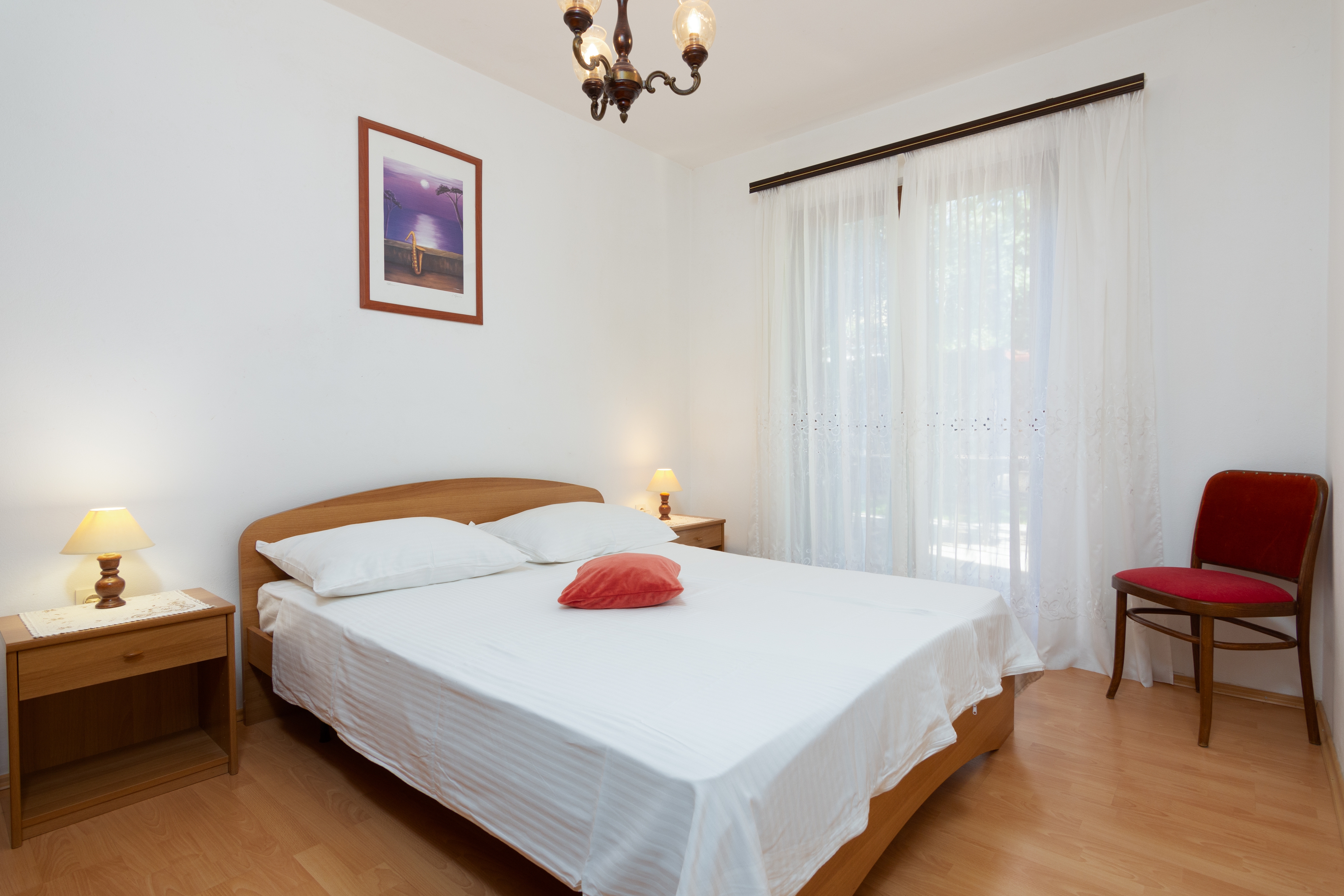 Apartment can accommodate 4 guests. Beds are situated in 2 sleeping rooms, within 52m2. Guests can use a private terrace to enjoy the warm summer evenings. Food can be prepared using barbecue which is shared with other guests too. INCLUDED IN THE PRICE: tourist tax, final cleaning, air-conditioning, parking, internet, baby cot, iron, ironing board, hairdryer. OBLIGATORY ADDITIONAL COSTS: short stay fee (surcharge depending on a number of booked nights: 30% - 1, 20% - 2, 10% - 3). OPTIONAL ADDITIONAL COSTS: laundry (€5.00 washing), boat mooring (€5.00 per night), additional bed (€10.00 per night). The availability of additional services for your chosen dates of stay, as well as their prices (if none are listed) must be checked ahead of time. Any additional services not shown in the price calculation are payable directly to the property owner and only if used by the visitor. Discounts to the base price: free day 21=19 (for reservations of 21 or more days you get 2 free days for the stay until 31122026).