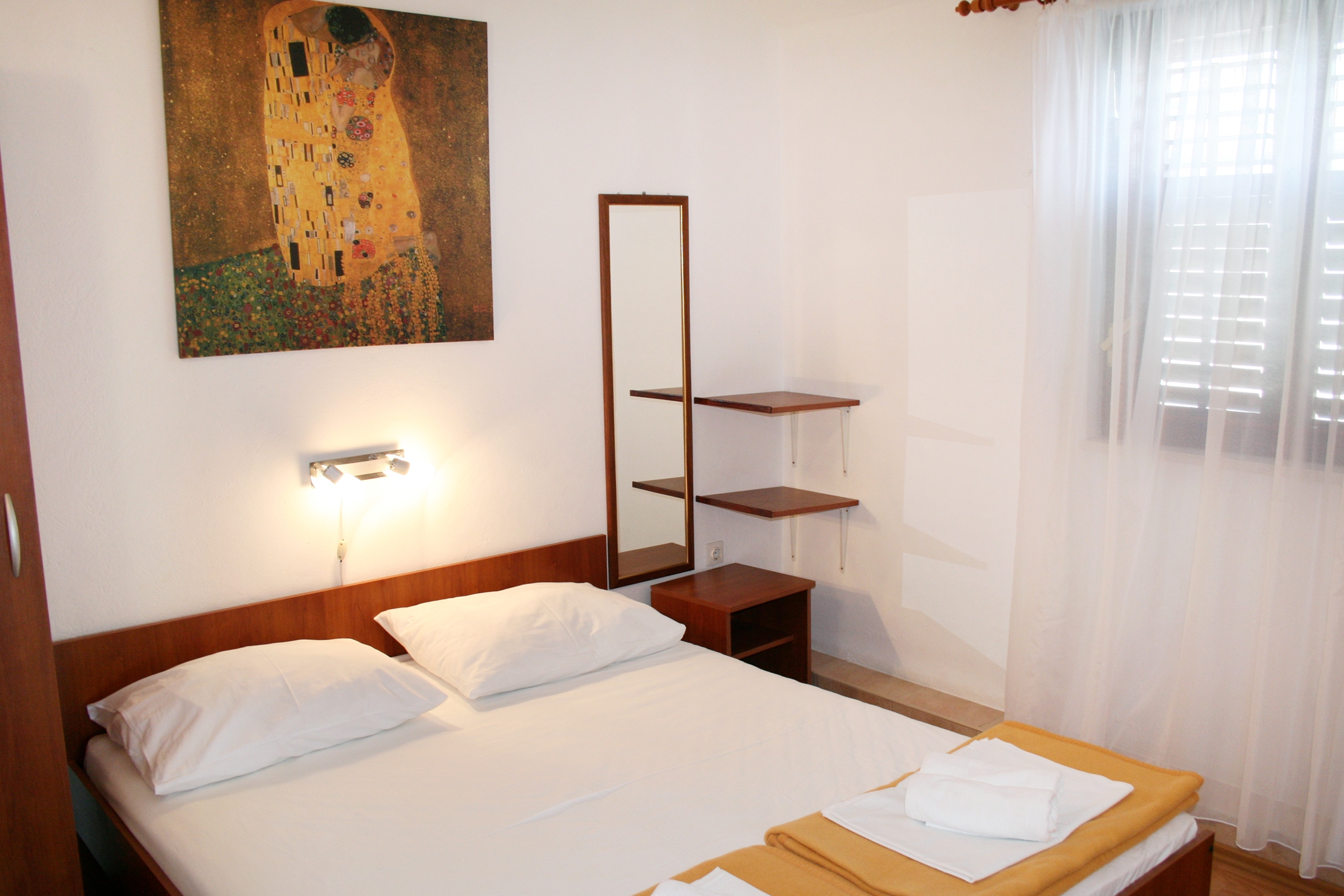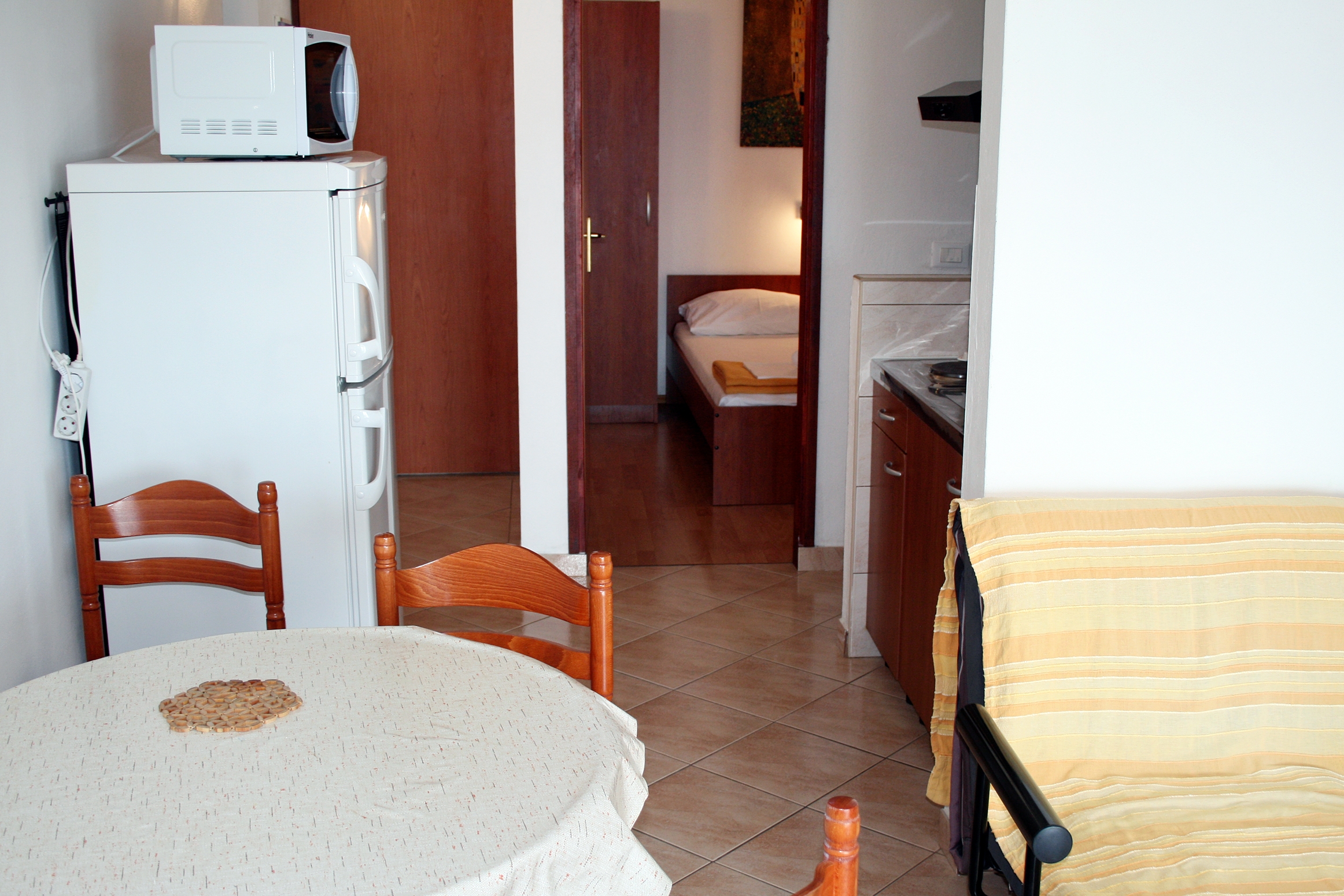 Apartment can accommodate 4 guests. Beds are situated in 1 sleeping rooms, but also in the living room, within 30m2. Guests can use a private terrace to enjoy the warm summer evenings. The apartment offers the sea view. Food can be prepared using barbecue which is shared with other guests too. This accommodation unit welcomes pets at an additional charge. INCLUDED IN THE PRICE: tourist tax, final cleaning, parking, garage, internet, baby cot. OBLIGATORY ADDITIONAL COSTS: short stay fee (surcharge depending on a number of booked nights: 30% - 1, 20% - 2, 10% - 3). OPTIONAL ADDITIONAL COSTS: air-conditioning (€0.50 per hour), pets (€10.00 per night). The availability of additional services for your chosen dates of stay, as well as their prices (if none are listed) must be checked ahead of time. Any additional services not shown in the price calculation are payable directly to the property owner and only if used by the visitor.