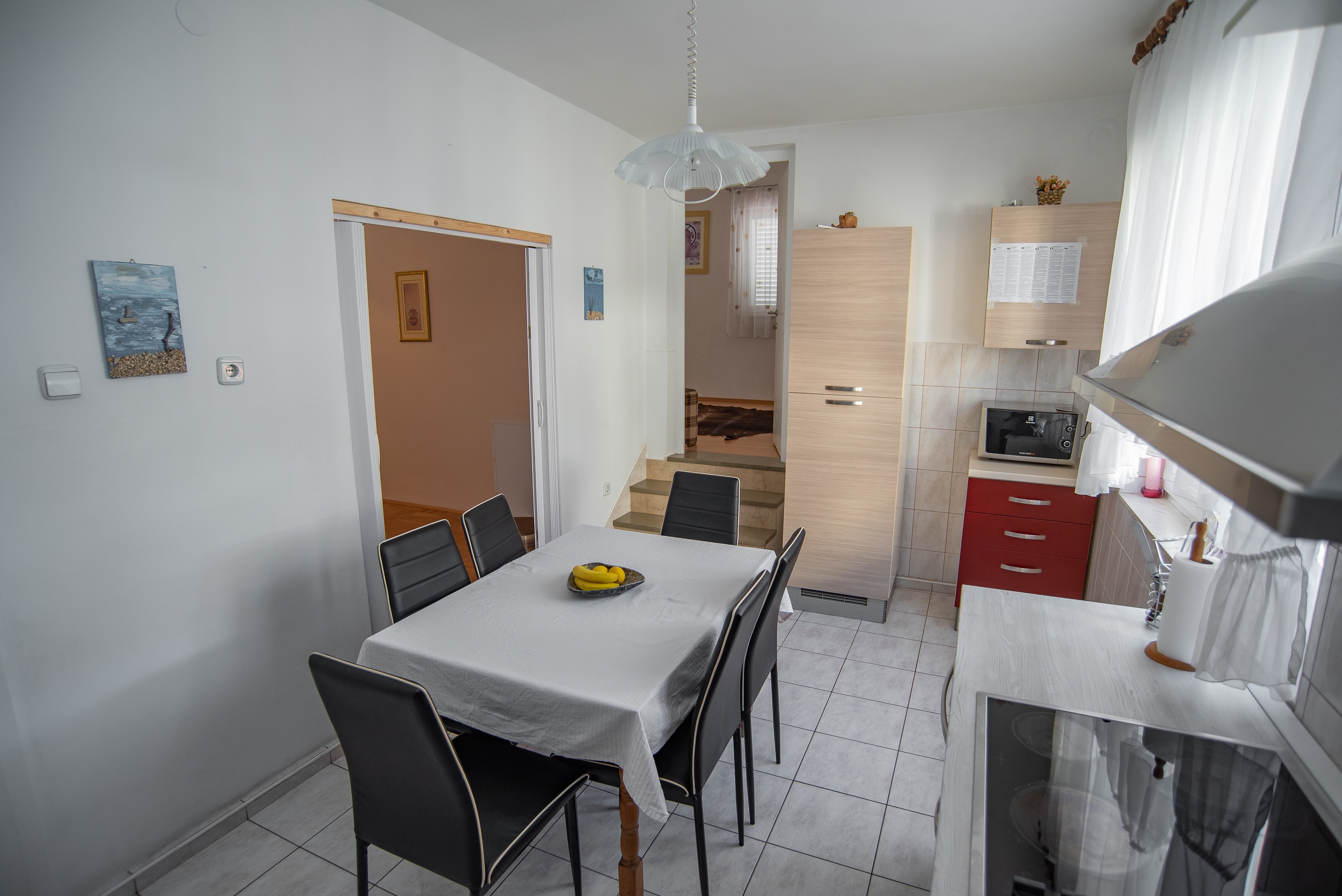 Apartment can accommodate 9 guests. Beds are situated in 3 sleeping rooms, within 112m2. Guests can use a private terrace to enjoy the warm summer evenings. Food can be prepared using barbecue which is shared with other guests too. INCLUDED IN THE PRICE: tourist tax, final cleaning, air-conditioning, parking, internet, laundry, baby cot, iron, hairdryer. OPTIONAL ADDITIONAL COSTS: additional bed (€10.00 per night). The availability of additional services for your chosen dates of stay, as well as their prices (if none are listed) must be checked ahead of time. Any additional services not shown in the price calculation are payable directly to the property owner and only if used by the visitor.