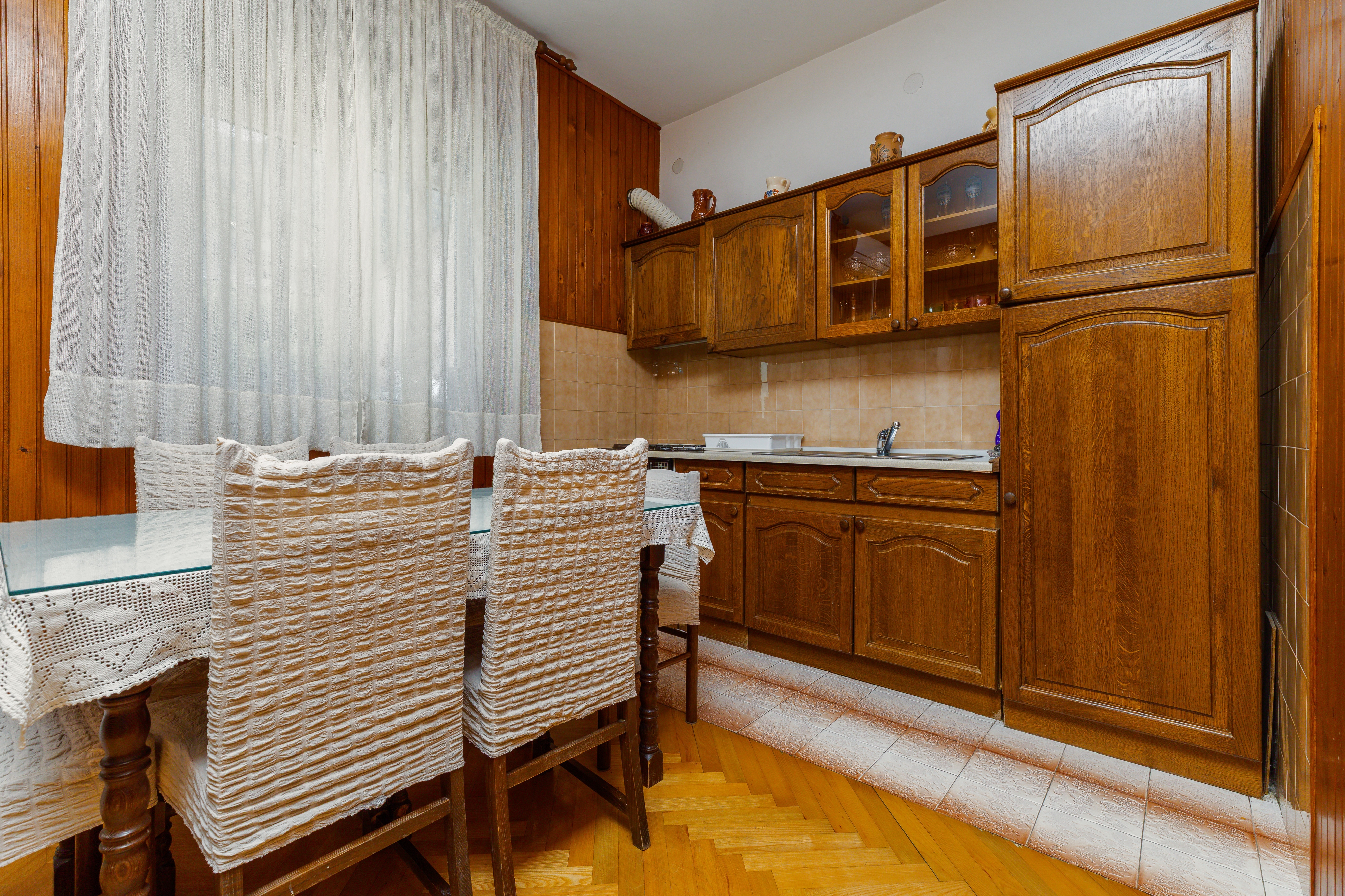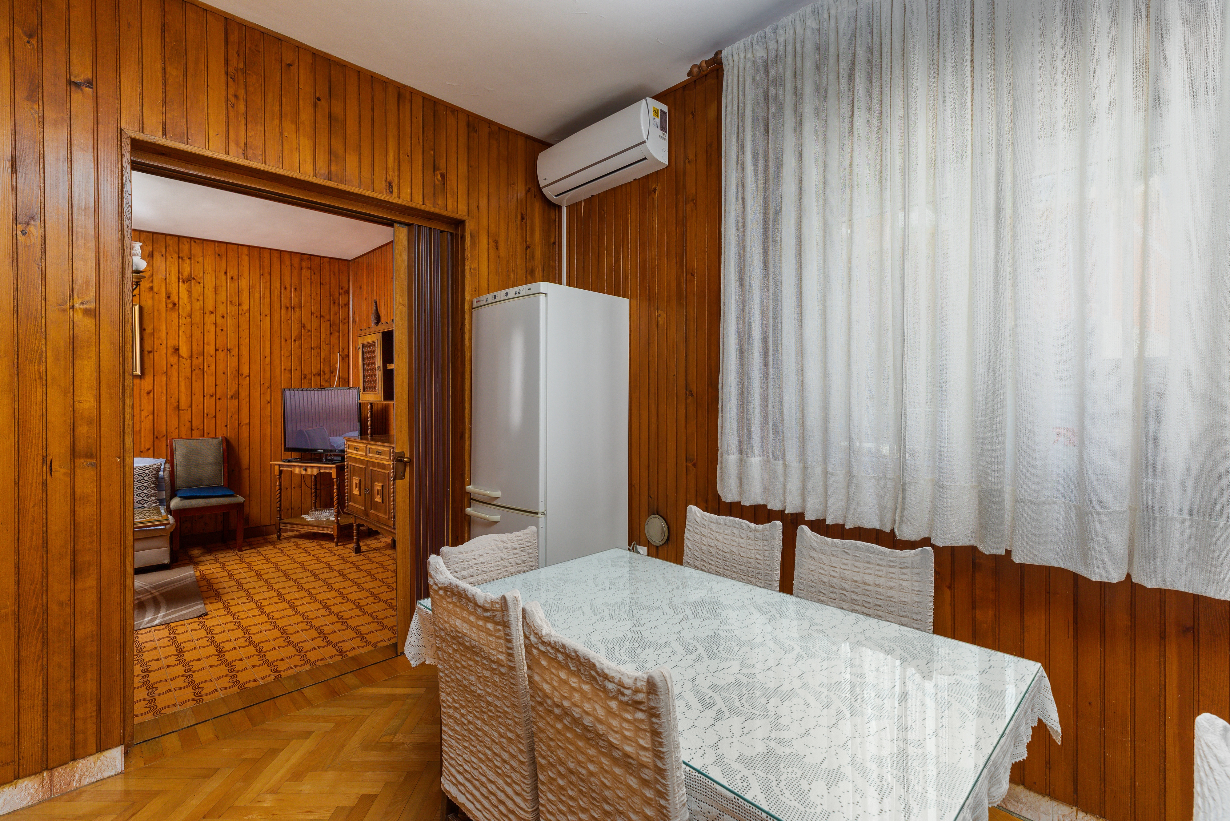 Apartment can accommodate 8 guests. Beds are situated in 3 sleeping rooms, within 86m2. Guests can use a private balcony to enjoy the warm summer evenings. The apartment offers the sea view. Food can be prepared using barbecue which is shared with other guests too. INCLUDED IN THE PRICE: tourist tax, final cleaning, air-conditioning, parking, garage, internet, baby cot, iron, ironing board, hairdryer. OBLIGATORY ADDITIONAL COSTS: short stay fee (surcharge depending on a number of booked nights: 30% - 1, 20% - 2, 10% - 3). The availability of additional services for your chosen dates of stay, as well as their prices (if none are listed) must be checked ahead of time. Any additional services not shown in the price calculation are payable directly to the property owner and only if used by the visitor.