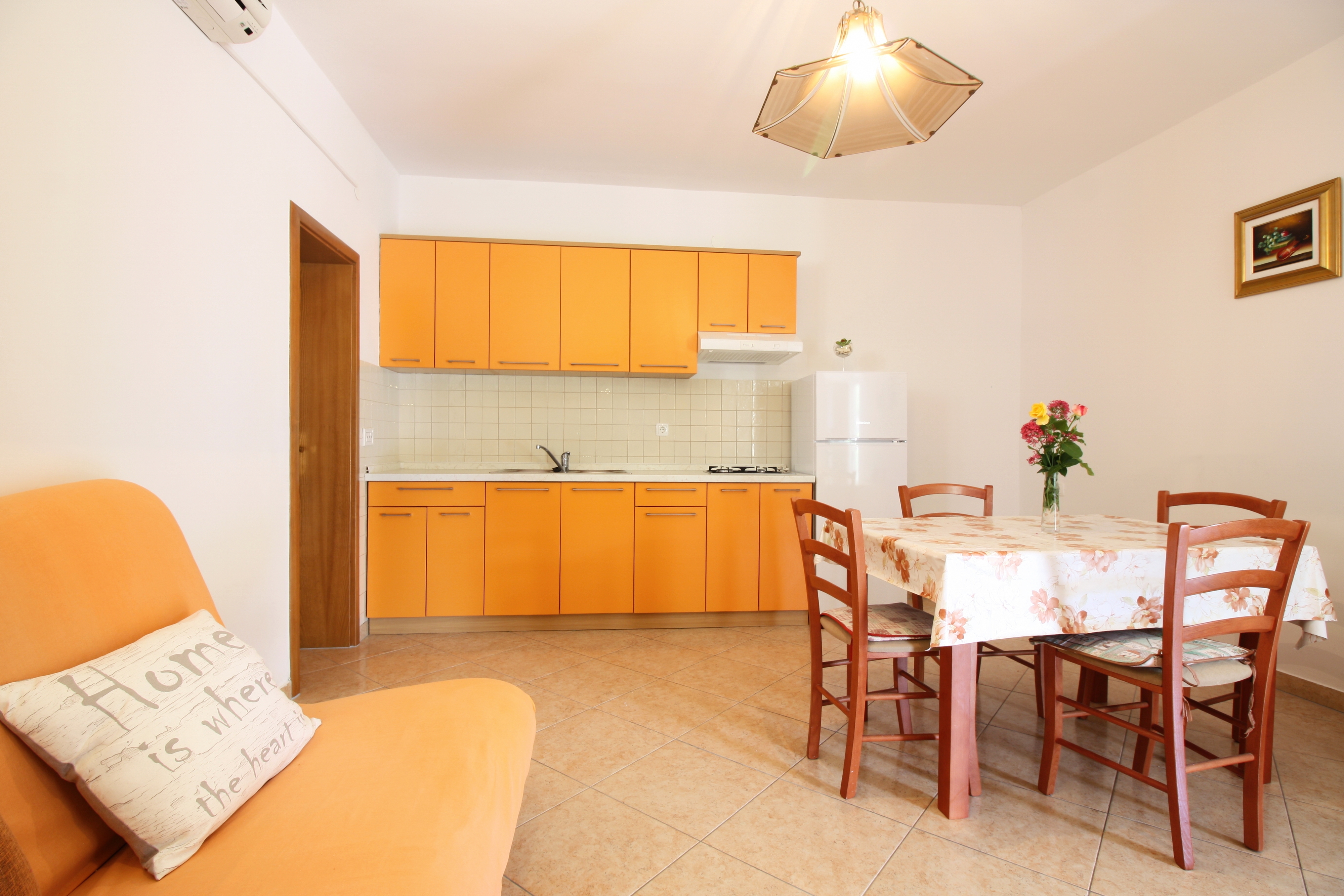 Apartment can accommodate 5 guests. Beds are situated in 1 sleeping rooms, but also in the living room, within 37m2. Guests can use a private terrace to enjoy the warm summer evenings. Food can be prepared using barbecue which is shared with other guests too. INCLUDED IN THE PRICE: tourist tax, final cleaning, air-conditioning, parking, internet, laundry, boat mooring, iron, ironing board, hairdryer. The availability of additional services for your chosen dates of stay, as well as their prices (if none are listed) must be checked ahead of time. Any additional services not shown in the price calculation are payable directly to the property owner and only if used by the visitor. Discounts to the base price: free day 14=13 (for reservations of 14 or more days you get one free day for the stay until 31122026).