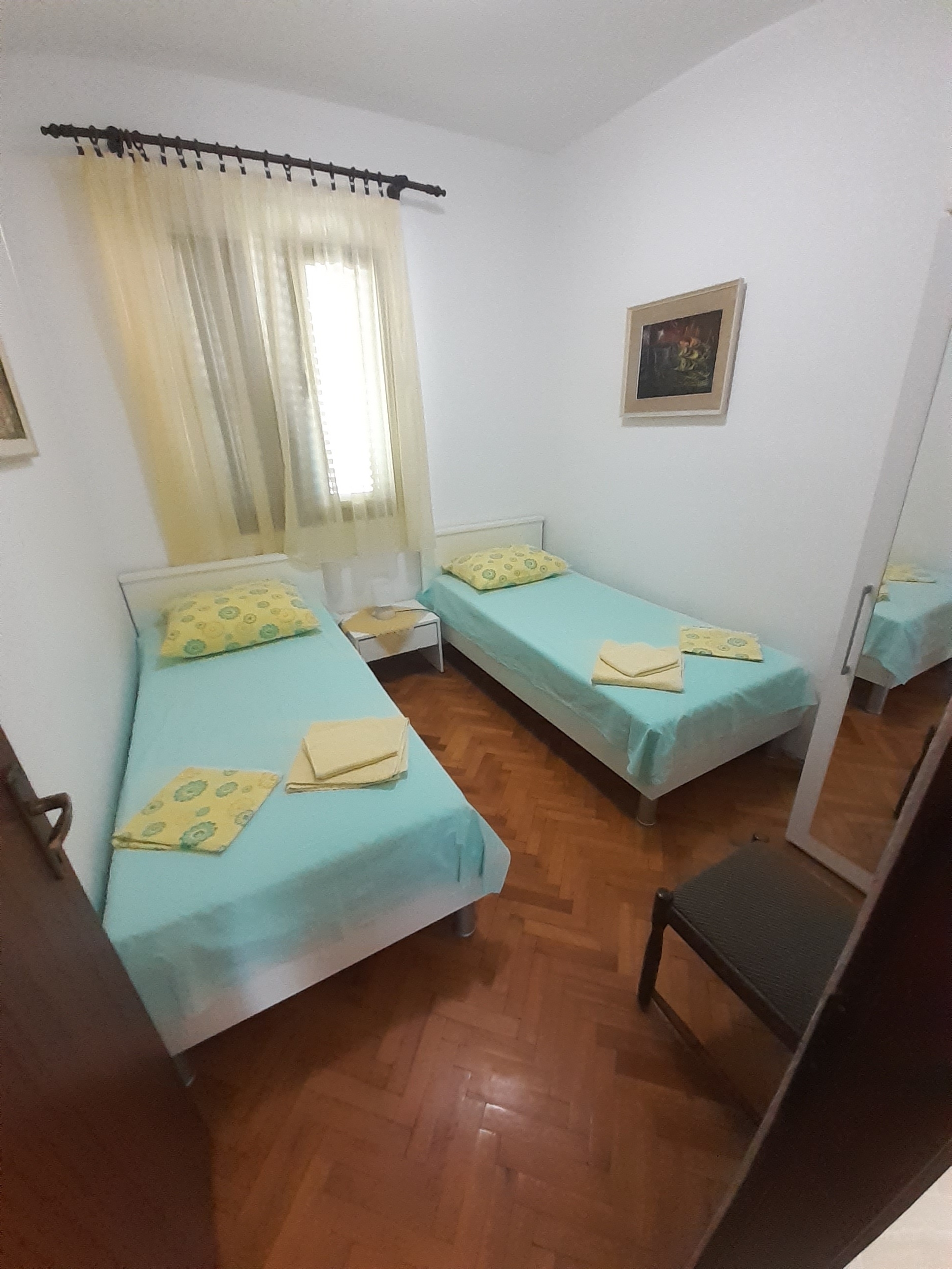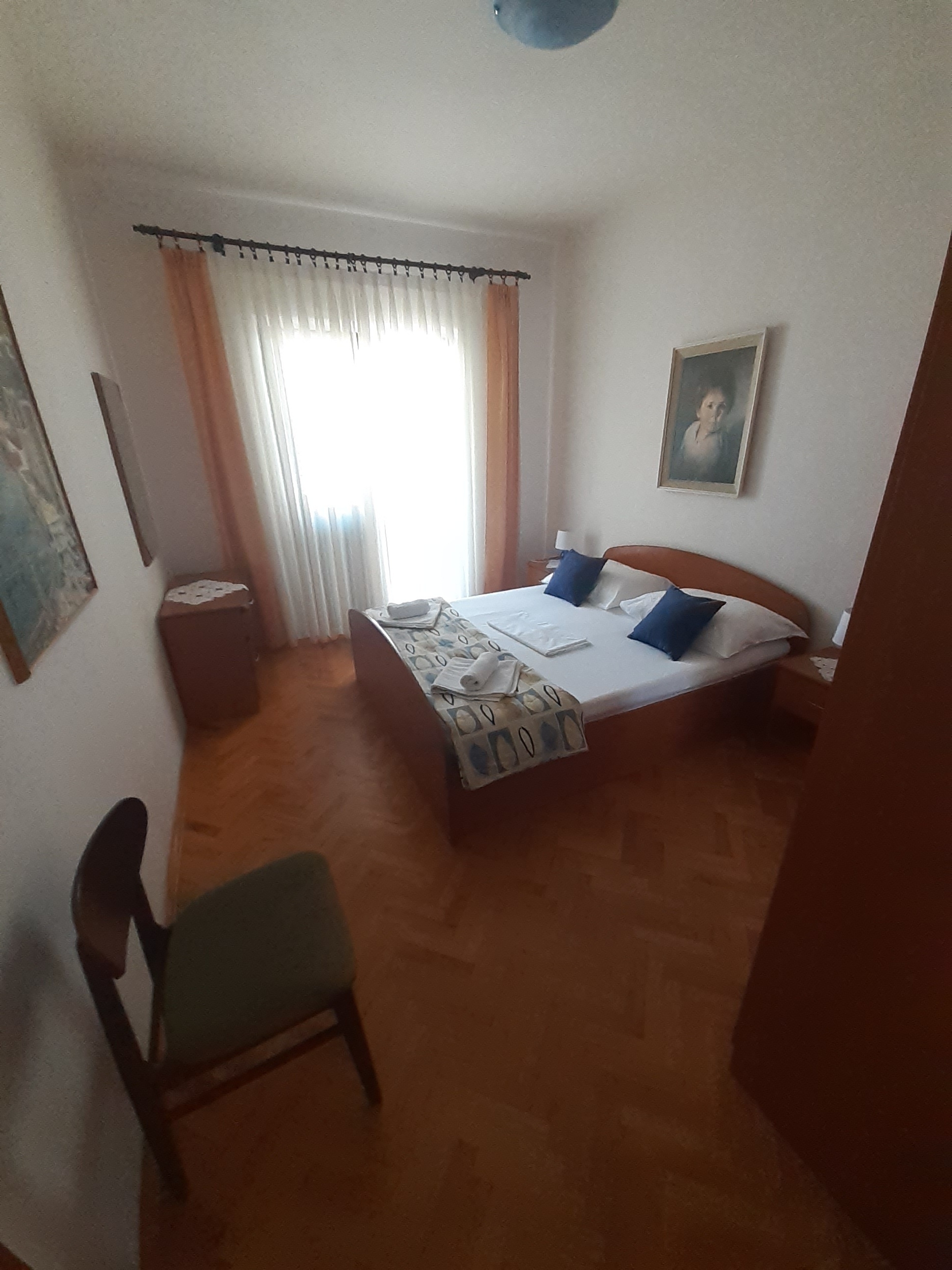 Apartment can accommodate 4 guests. Beds are situated in 2 sleeping rooms, within 45m2. Guests can use a private terrace to enjoy the warm summer evenings. The apartment offers the sea view. Food can be prepared using barbecue which is shared with other guests too. INCLUDED IN THE PRICE: tourist tax, final cleaning, parking, internet, laundry, baby cot, iron, ironing board, hairdryer. OBLIGATORY ADDITIONAL COSTS: short stay fee (surcharge depending on a number of booked nights: 30% - 1, 20% - 2, 10% - 3). OPTIONAL ADDITIONAL COSTS: air-conditioning (€5.00 per night), additional bed (€10.00 per night). The availability of additional services for your chosen dates of stay, as well as their prices (if none are listed) must be checked ahead of time. Any additional services not shown in the price calculation are payable directly to the property owner and only if used by the visitor.