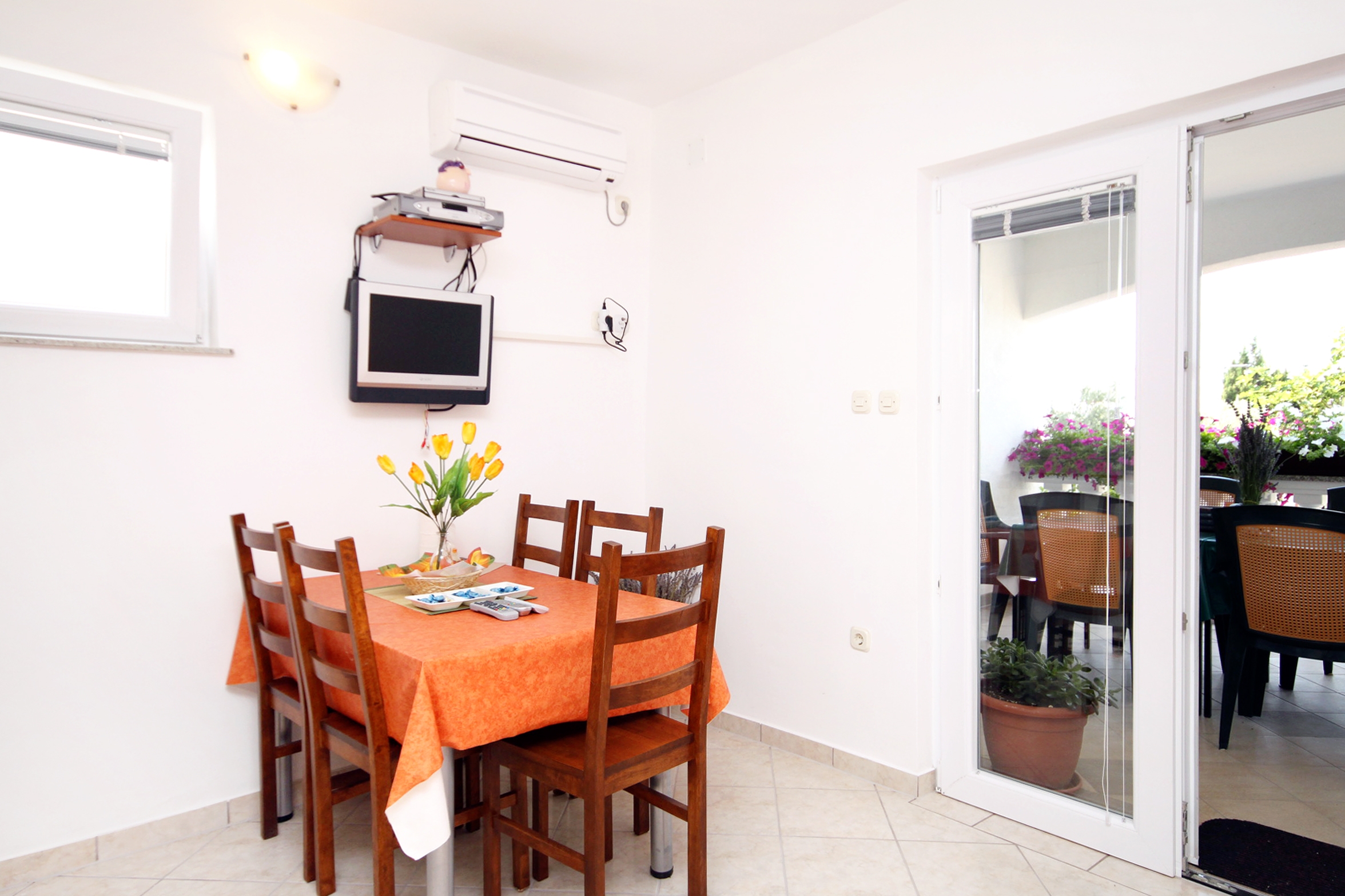 Apartment can accommodate 3 guests. Beds are situated in 1 sleeping rooms, but also in the living room, within 28m2. Guests can use a private terrace to enjoy the warm summer evenings. Food can be prepared using barbecue which is shared with other guests too. INCLUDED IN THE PRICE: tourist tax, final cleaning, air-conditioning, parking, internet, laundry, iron, ironing board, hairdryer. OBLIGATORY ADDITIONAL COSTS: short stay fee (surcharge depending on a number of booked nights: 30% - 1, 20% - 2, 10% - 3). The availability of additional services for your chosen dates of stay, as well as their prices (if none are listed) must be checked ahead of time. Any additional services not shown in the price calculation are payable directly to the property owner and only if used by the visitor.
