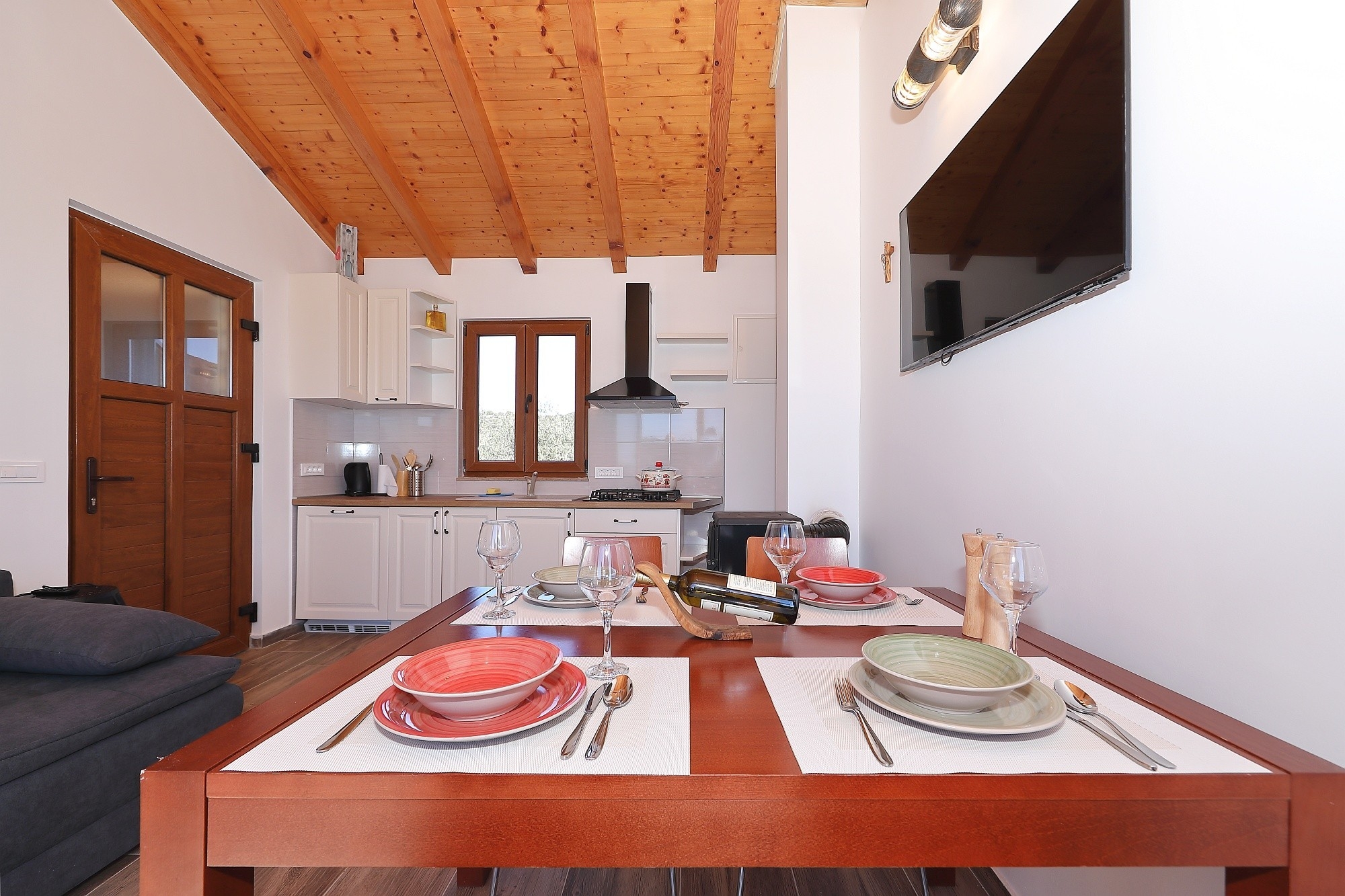 House can accommodate 4 guests. Beds are situated in 1 sleeping rooms, but also in the living room, within 30m2. Guests can use a private terrace to enjoy the warm summer evenings. The house offers the sea view. For full enjoyment and relaxation there is a private barbecue for this accommodation guests only. This accommodation unit welcomes pets at an additional charge. INCLUDED IN THE PRICE: tourist tax, final cleaning, air-conditioning, parking, internet, bicycle, hairdryer. OPTIONAL ADDITIONAL COSTS: pets (€5.00 per night). The availability of additional services for your chosen dates of stay, as well as their prices (if none are listed) must be checked ahead of time. Any additional services not shown in the price calculation are payable directly to the property owner and only if used by the visitor.