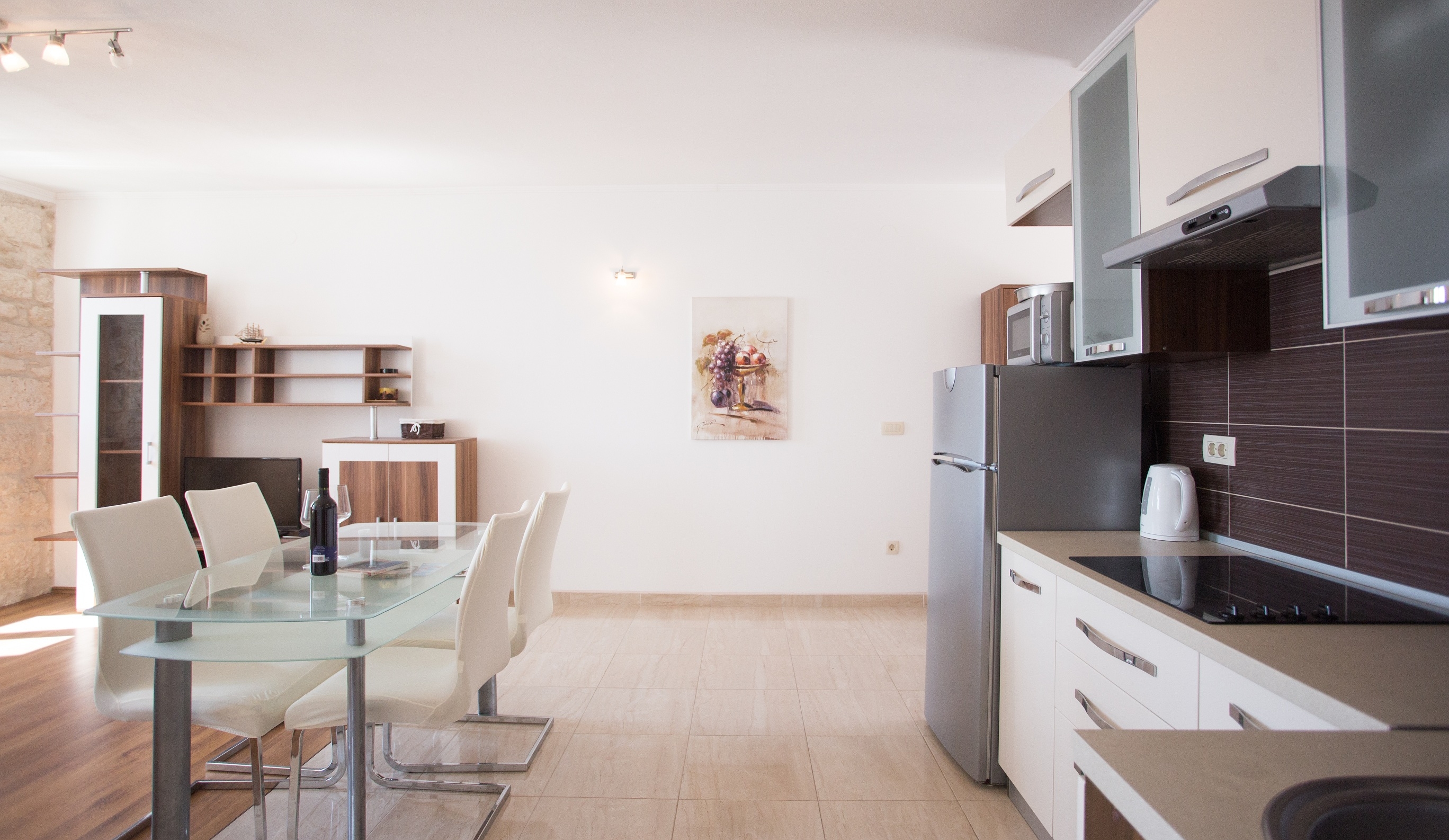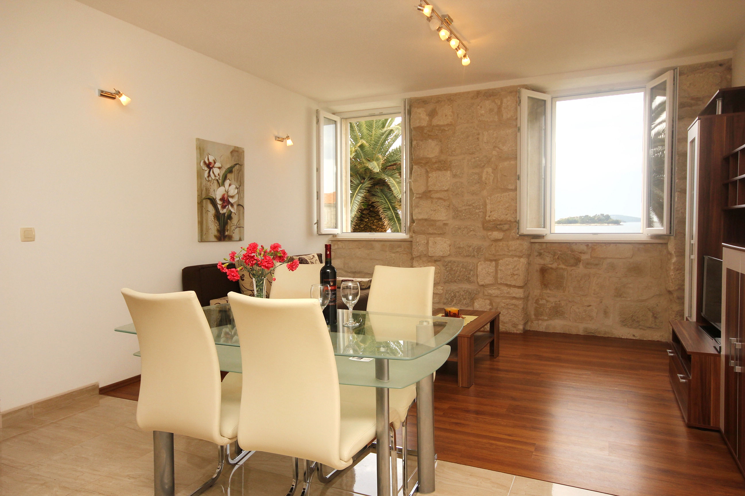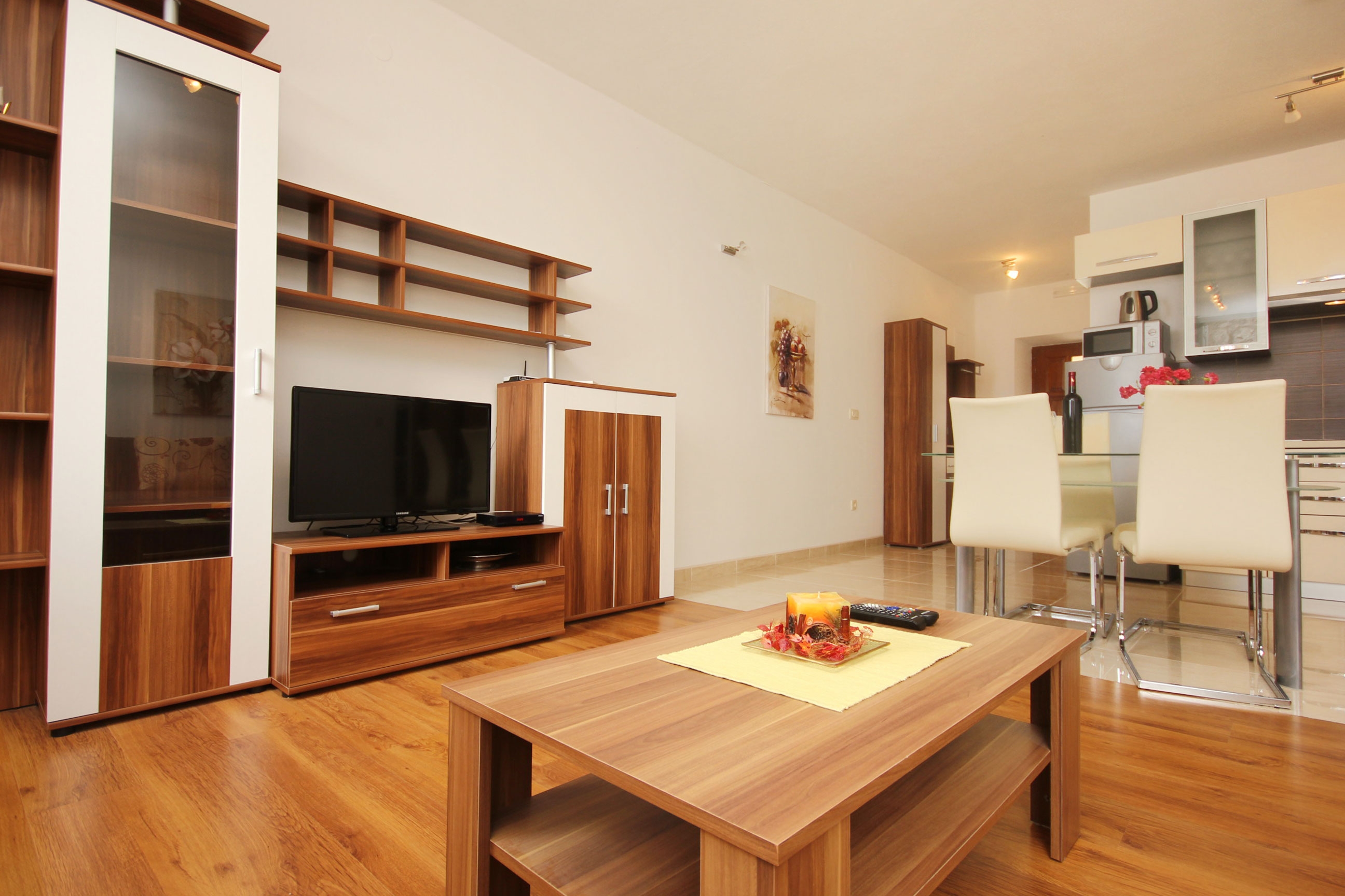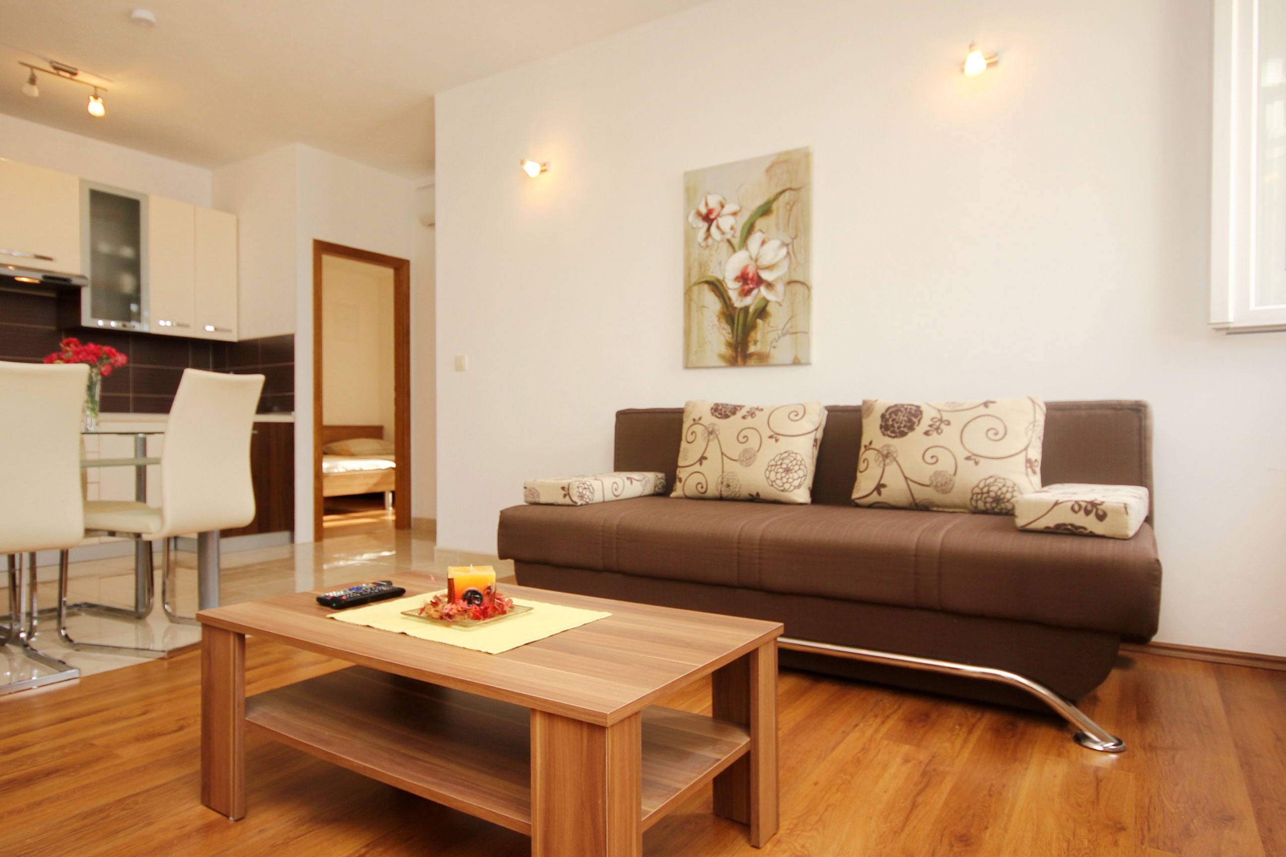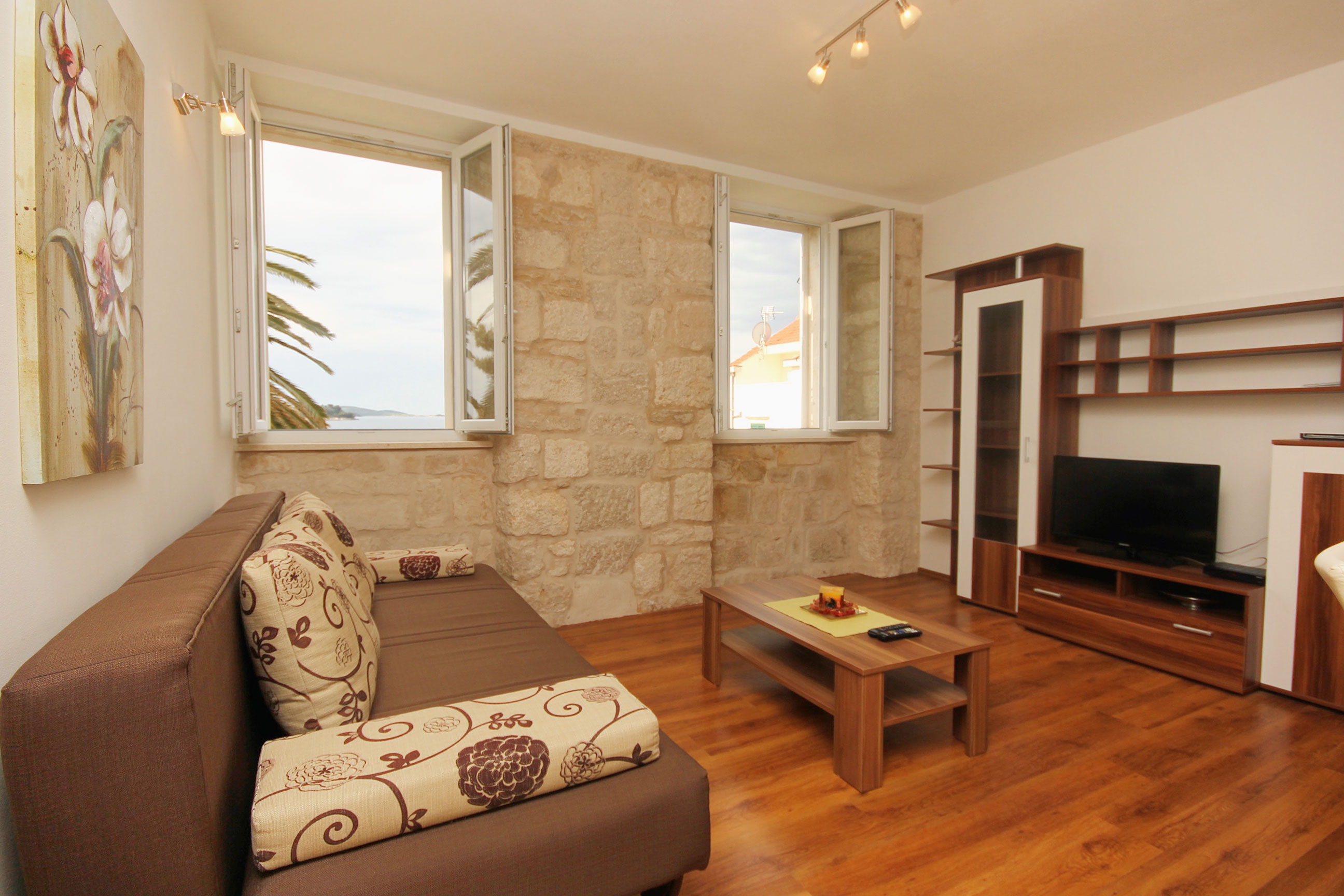 Apartment can accommodate 6 guests. Beds are situated in 2 sleeping rooms, but also in the living room, within 62m2. Guests can use a private terrace to enjoy the warm summer evenings. The apartment offers the sea view. Food can be prepared using barbecue which is shared with other guests too. Other guests or hosts pass through the terrace of the booked accommodation unit. Some of the rooms of the accommodation unit are not connected with the rest of the unit. INCLUDED IN THE PRICE: tourist tax, final cleaning, air-conditioning, parking, internet, baby cot, iron, ironing board, hairdryer. The availability of additional services for your chosen dates of stay, as well as their prices (if none are listed) must be checked ahead of time. Any additional services not shown in the price calculation are payable directly to the property owner and only if used by the visitor.