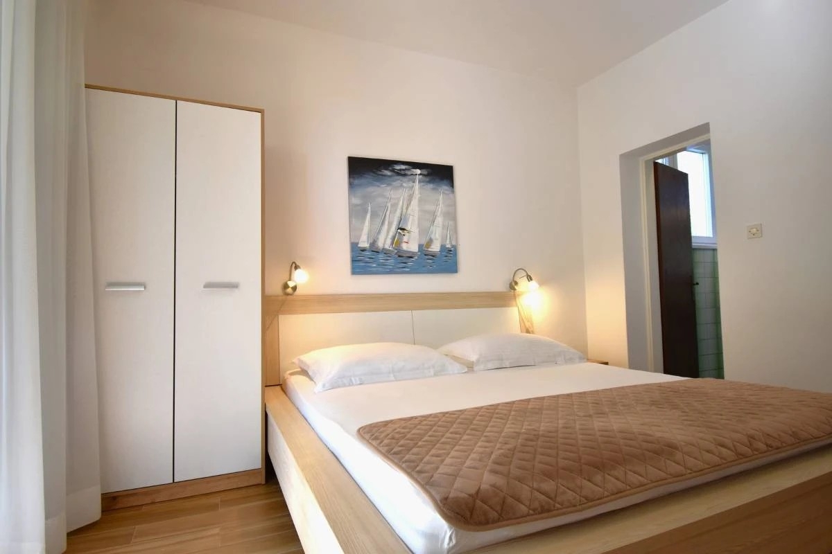 The house 24672 is located in Banjol, Rab - Kvarner. The nearest beach is pebble. Other guests may possibly be found in the house during your holiday, as it contains multiple apartments. Your hosts will not be staying in the house during your holiday. The house owner is under no obligation to accept additional persons and pets that were not stated in the reservation request and it is necessary to report them in advance.AMENITIES Courtyard (500m2, Sitting area), Parking lot (Number of parking spaces: 3, Distance from the house: In the courtyard), Barbecue: shared, WiFi Internet, Hairdryer, Portable barbecue, Baby cot LOCATION AND ACCESS Facility is situated near a local road There is no road between the property and the beach Car access possible: Yes The facility is situated in relatively quiet surroundings DISTANCES Beach: 400 m Center: 3 km Shop: 650 m Urgent medical care: 3 km Pharmacy: 2.2 km Exchange office: 2.5 km ATMBank machine: 1.3 km Tourist info: 1.7 km Ferry port: 8.5 km Bus station: 2.5 km Gas station: 500 m Farmers market: 2.5 km