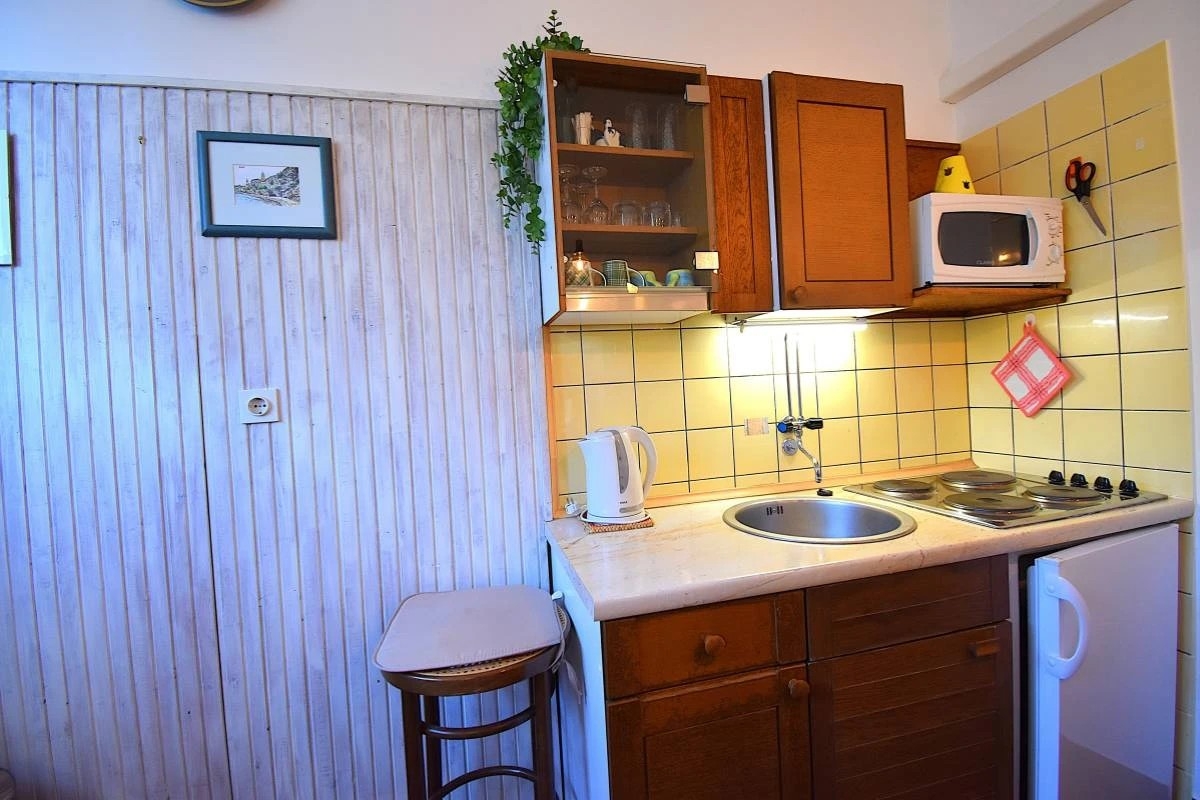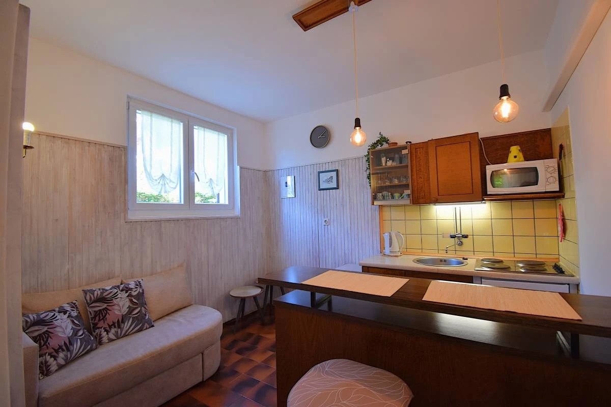 Studio flat can accommodate 2 guests. Beds are situated in 1 sleeping rooms, within 29m2. Guests can use a private terrace to enjoy the warm summer evenings. Food can be prepared using barbecue which is shared with other guests too. INCLUDED IN THE PRICE: tourist tax, final cleaning, air-conditioning, parking, internet, baby cot, hairdryer, portable barbecue. The availability of additional services for your chosen dates of stay, as well as their prices (if none are listed) must be checked ahead of time. Any additional services not shown in the price calculation are payable directly to the property owner and only if used by the visitor.
