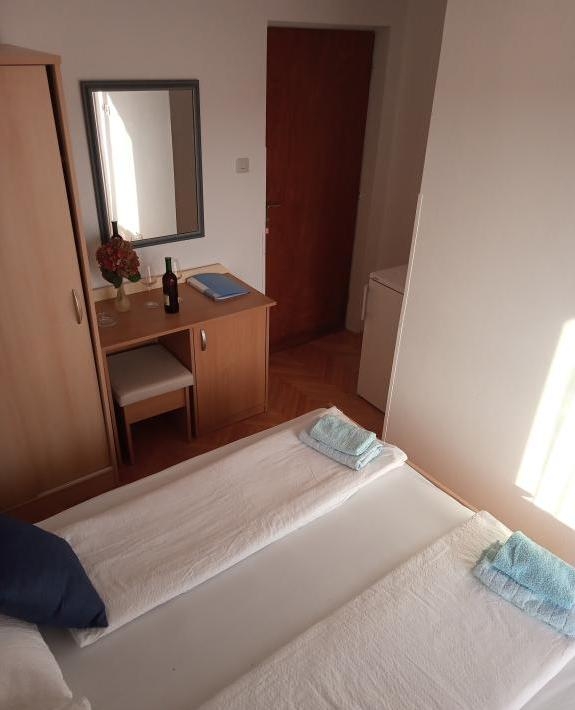 Room can accommodate 4 guests. Beds are situated in 2 sleeping rooms, within 34m2. Use of shared kitchen is possible. Guests can use a private balcony to enjoy the warm summer evenings. Food can be prepared using barbecue which is shared with other guests too. Reserved accommodation unit is a room with its own bathroom and shared kitchen at no additional charge. INCLUDED IN THE PRICE: final cleaning, shared kitchen, parking, internet, baby cot, hairdryer. OBLIGATORY ADDITIONAL COSTS: tourist tax (adults €0.93 - €1.90 nightperson, discount for children aged 12 - 17), short stay fee (surcharge depending on a number of booked nights: 30% - 1, 20% - 2, 10% - 3). The availability of additional services for your chosen dates of stay, as well as their prices (if none are listed) must be checked ahead of time. Any additional services not shown in the price calculation are payable directly to the property owner and only if used by the visitor.