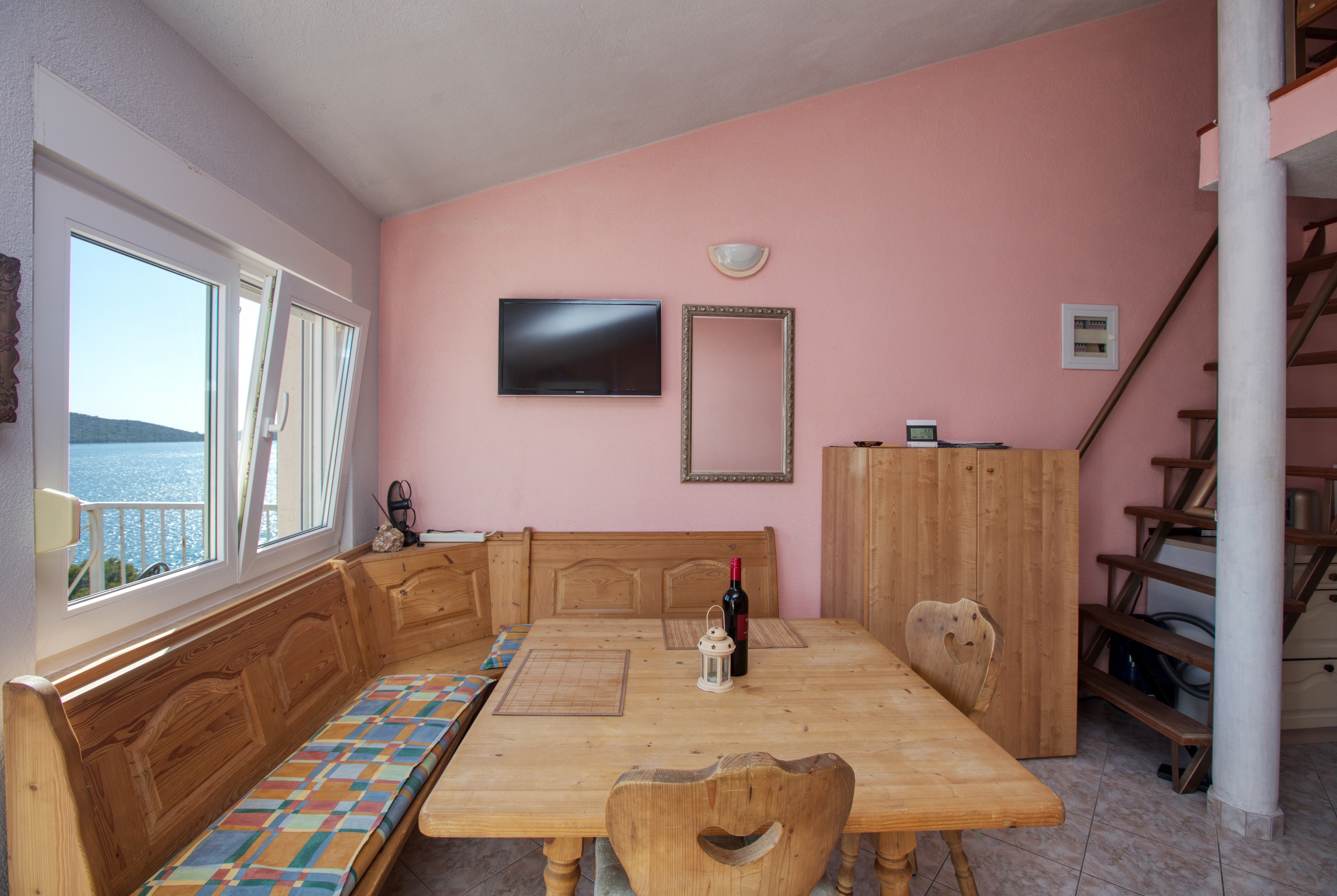 Apartment can accommodate 4 guests. Beds are situated in 1 sleeping rooms, but also in the living room, within 41m2. Guests can use a private balcony to enjoy the warm summer evenings. The apartment offers the sea view. Food can be prepared using barbecue which is shared with other guests too. INCLUDED IN THE PRICE: tourist tax, final cleaning, air-conditioning, internet, boat mooring, iron, ironing board, hairdryer, portable barbecue, sunshade, sunchairs. The availability of additional services for your chosen dates of stay, as well as their prices (if none are listed) must be checked ahead of time. Any additional services not shown in the price calculation are payable directly to the property owner and only if used by the visitor.