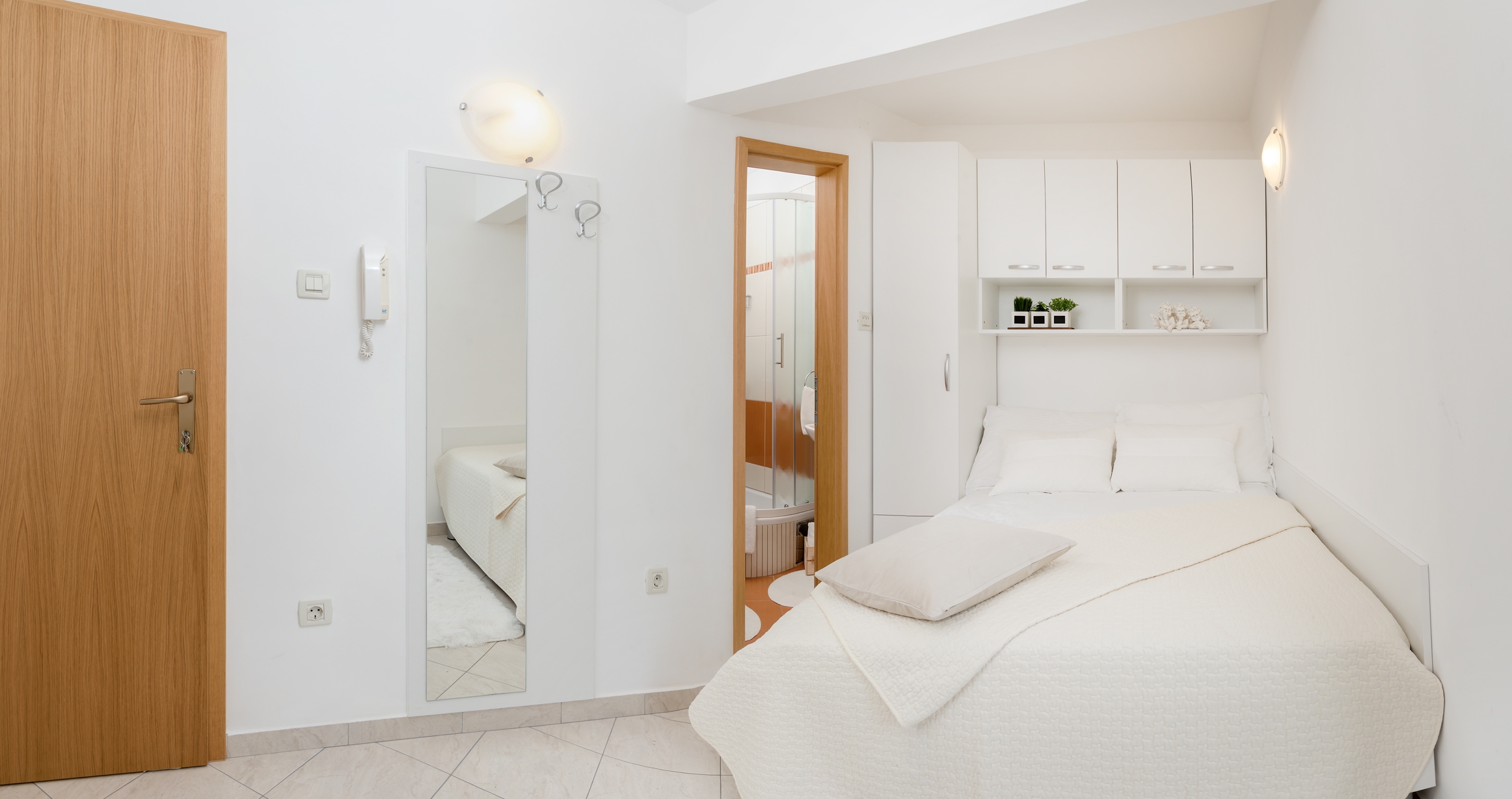Room can accommodate 2 guests. Beds are situated in 1 sleeping rooms, within 10m2. Guests can use a private balcony to enjoy the warm summer evenings. The room offers the sea view. Reserved accommodation unit is a room with its own bathroom and there is no usage of kitchen. INCLUDED IN THE PRICE: tourist tax, final cleaning, air-conditioning, parking, internet. OBLIGATORY ADDITIONAL COSTS: short stay fee (surcharge depending on a number of booked nights: 30% - 1, 20% - 2, 10% - 3). The availability of additional services for your chosen dates of stay, as well as their prices (if none are listed) must be checked ahead of time. Any additional services not shown in the price calculation are payable directly to the property owner and only if used by the visitor.