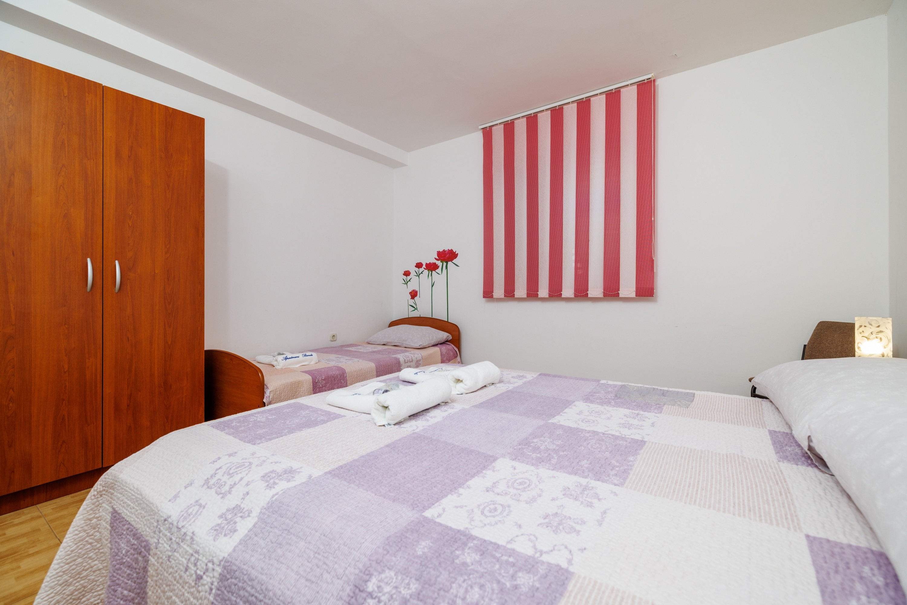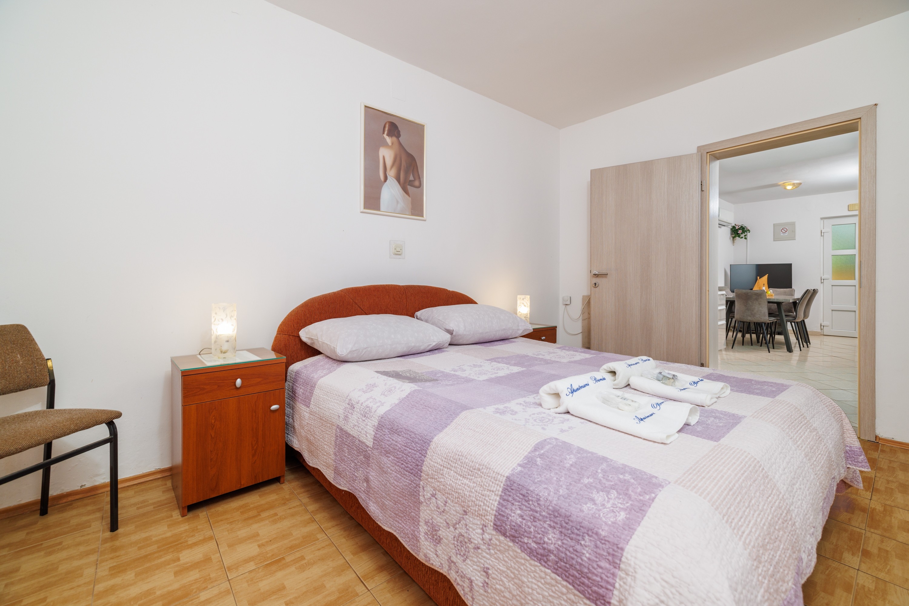 Apartment can accommodate 5 guests. Beds are situated in 1 sleeping rooms, but also in the living room, within 39m2. Guests can use a private terrace to enjoy the warm summer evenings. Food can be prepared using barbecue which is shared with other guests too. INCLUDED IN THE PRICE: tourist tax, final cleaning, parking, internet, iron. OPTIONAL ADDITIONAL COSTS: air-conditioning (€5.00 per night), laundry (€5.00 washing), additional bed (€7.00 per night). The availability of additional services for your chosen dates of stay, as well as their prices (if none are listed) must be checked ahead of time. Any additional services not shown in the price calculation are payable directly to the property owner and only if used by the visitor. Discounts to the base price: free day 14=13 (for reservations of 14 or more days you get one free day for the stay until 31122026).