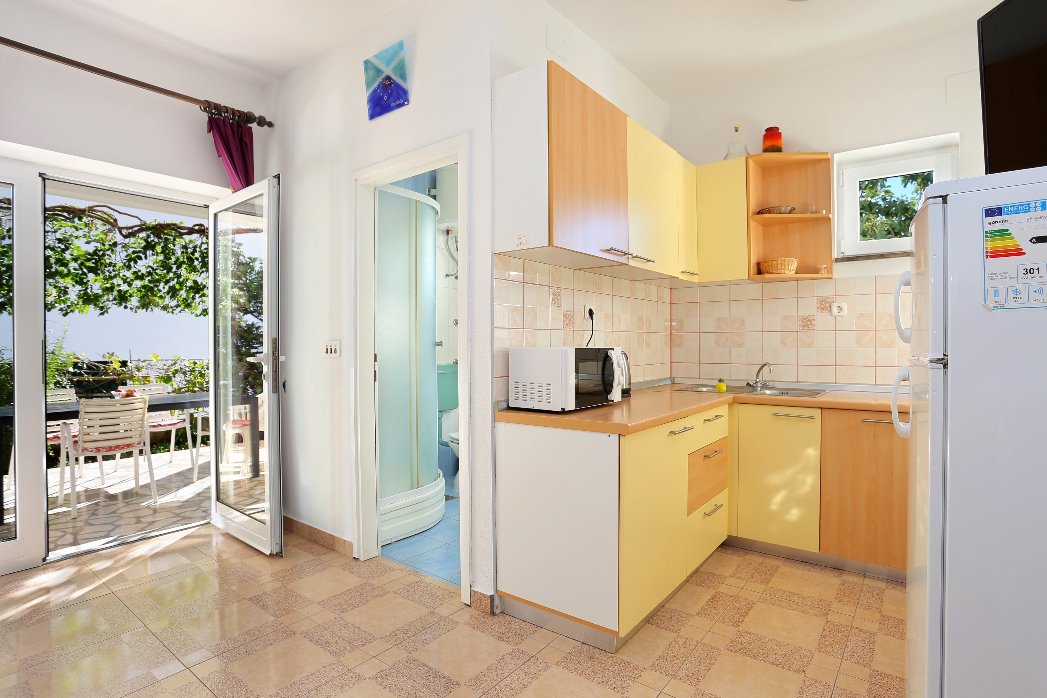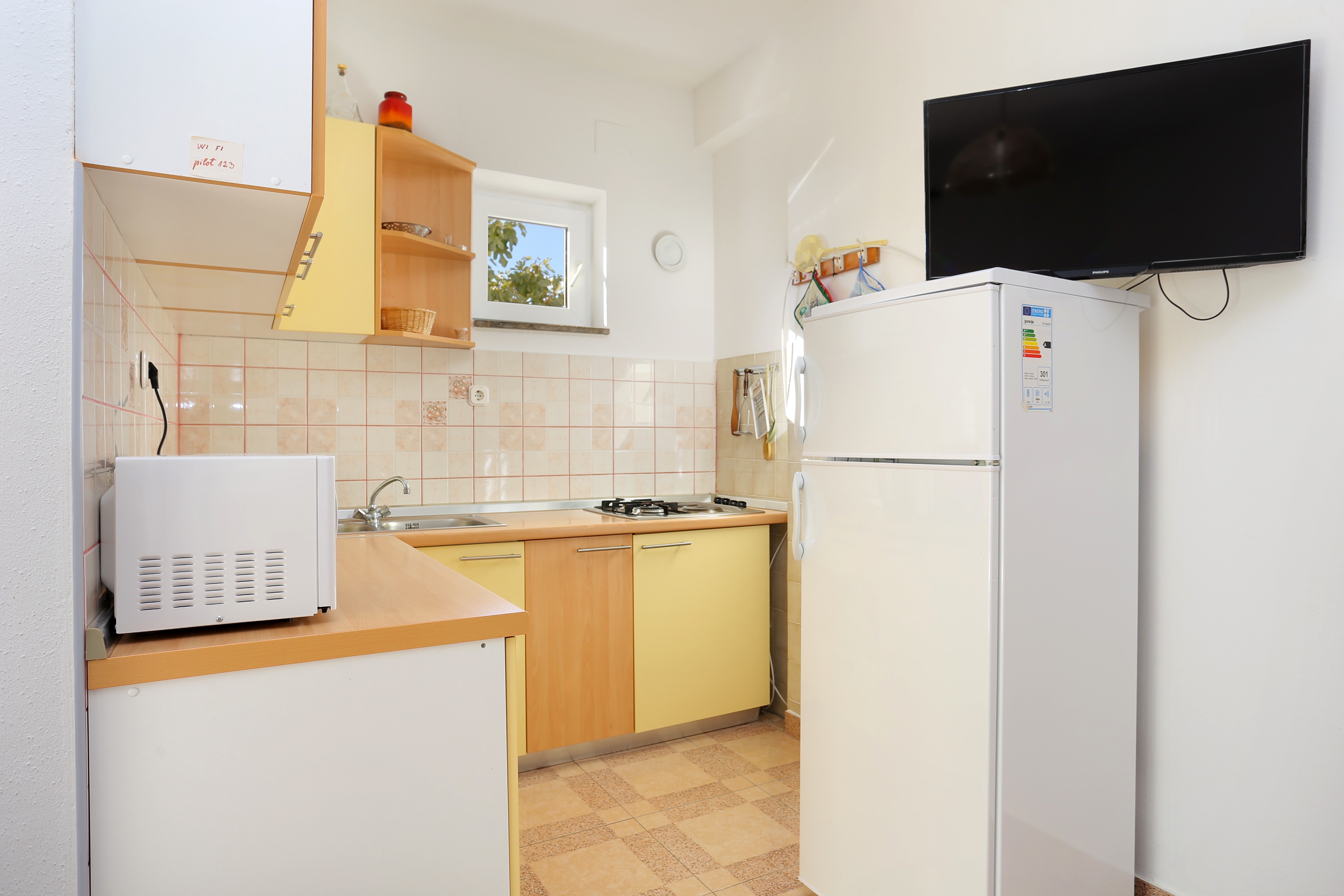 Apartment can accommodate 3 guests. Beds are situated in 1 sleeping rooms, but also in the dining room, within 36m2. Guests can use a private terrace to enjoy the warm summer evenings. The apartment offers the sea view. Food can be prepared using barbecue which is shared with other guests too. INCLUDED IN THE PRICE: tourist tax, final cleaning, air-conditioning, parking, internet, boat mooring, baby cot, iron, ironing board, hairdryer. OBLIGATORY ADDITIONAL COSTS: short stay fee (surcharge depending on a number of booked nights: 30% - 1, 20% - 2, 10% - 3). OPTIONAL ADDITIONAL COSTS: laundry (€5.00 washing). The availability of additional services for your chosen dates of stay, as well as their prices (if none are listed) must be checked ahead of time. Any additional services not shown in the price calculation are payable directly to the property owner and only if used by the visitor.
