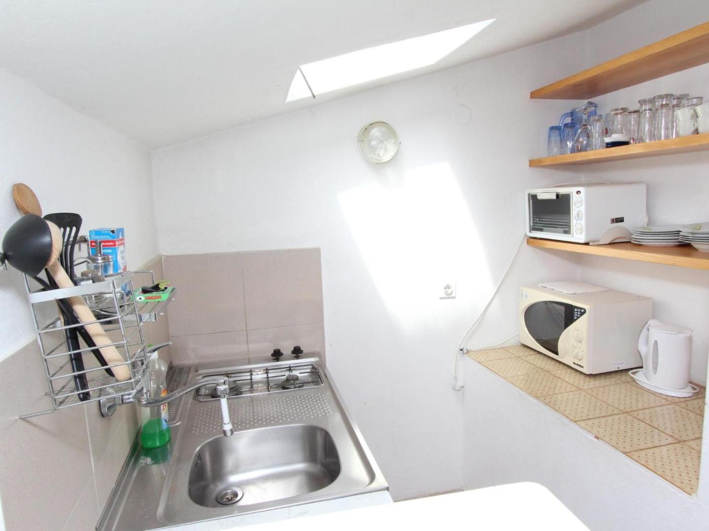Apartment. This apartment comes with 1 living room, 2 separate bedrooms and 1 bathroom with a bath or a shower. The apartments kitchenette, which features a refrigerator and kitchenware, is available for cooking and storing food. The apartment has a terrace. The unit has 3 beds.