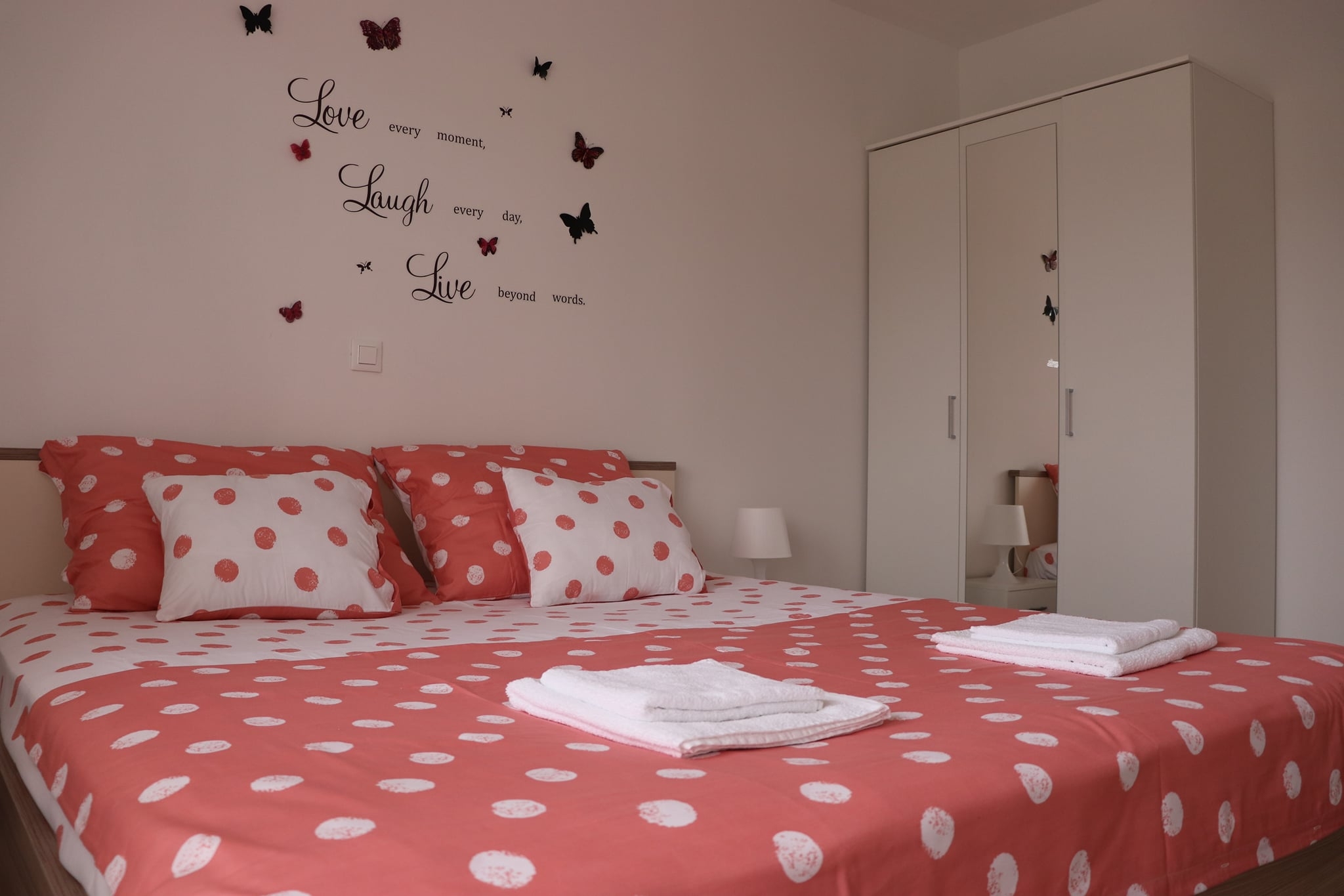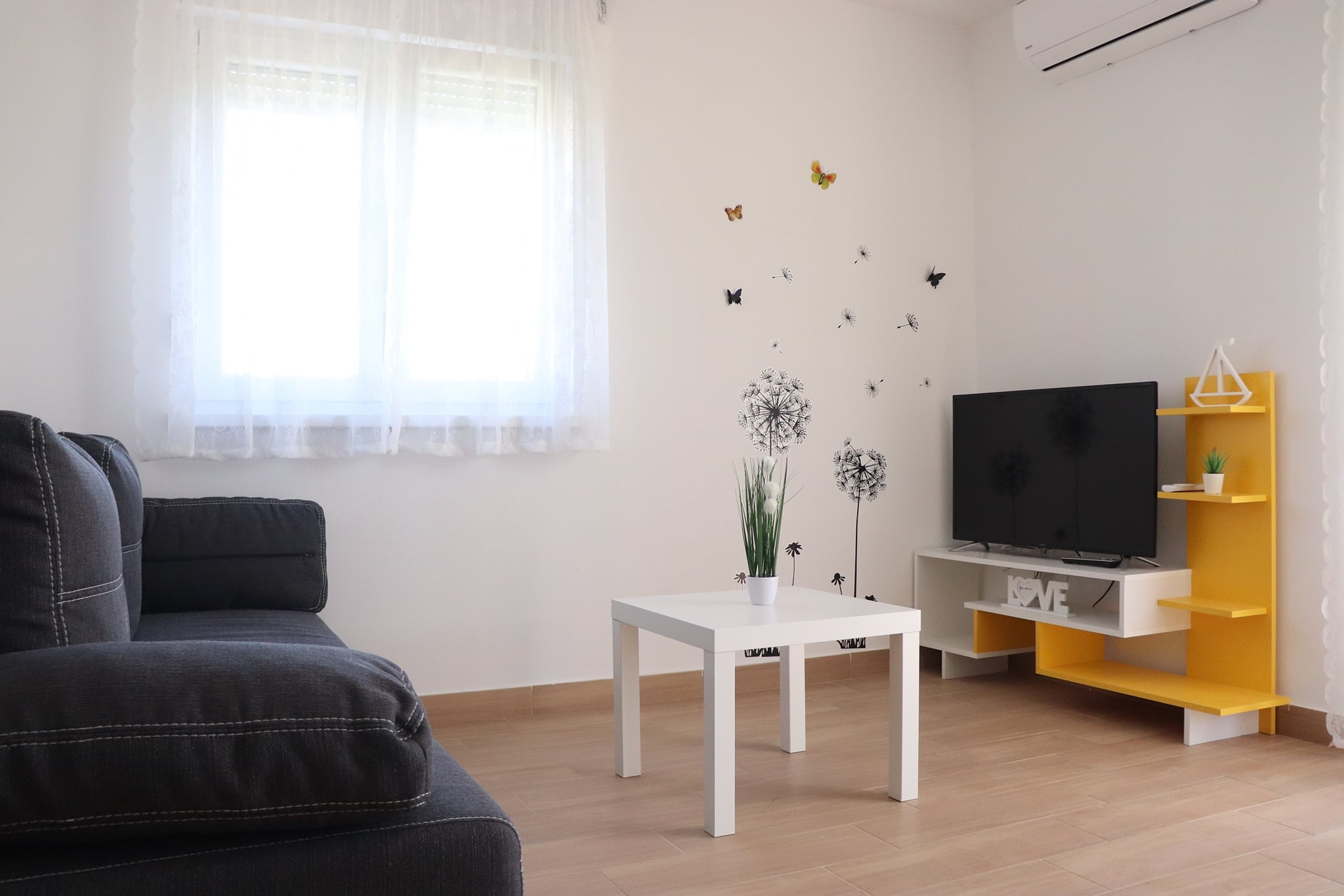 Apartment can accommodate 4 guests. Beds are situated in 1 sleeping rooms, but also in the living room, within 40m2. Guests can use a private balcony to enjoy the warm summer evenings. The apartment offers the sea view. Food can be prepared using barbecue which is shared with other guests too. INCLUDED IN THE PRICE: tourist tax, final cleaning, air-conditioning, parking, internet, baby cot, iron, ironing board. The availability of additional services for your chosen dates of stay, as well as their prices (if none are listed) must be checked ahead of time. Any additional services not shown in the price calculation are payable directly to the property owner and only if used by the visitor.