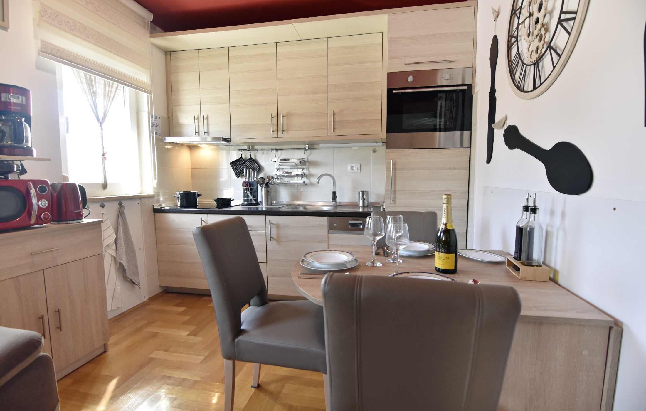 Apartment can accommodate 3 guests. Beds are situated in 1 sleeping rooms, but also in the living room, within 40m2. There is no balcony or terrace in the reserved accommodation unit. INCLUDED IN THE PRICE: tourist tax, final cleaning, air-conditioning, internet, iron, ironing board, hairdryer. OPTIONAL ADDITIONAL COSTS: garage (€5.00 per night). The availability of additional services for your chosen dates of stay, as well as their prices (if none are listed) must be checked ahead of time. Any additional services not shown in the price calculation are payable directly to the property owner and only if used by the visitor.