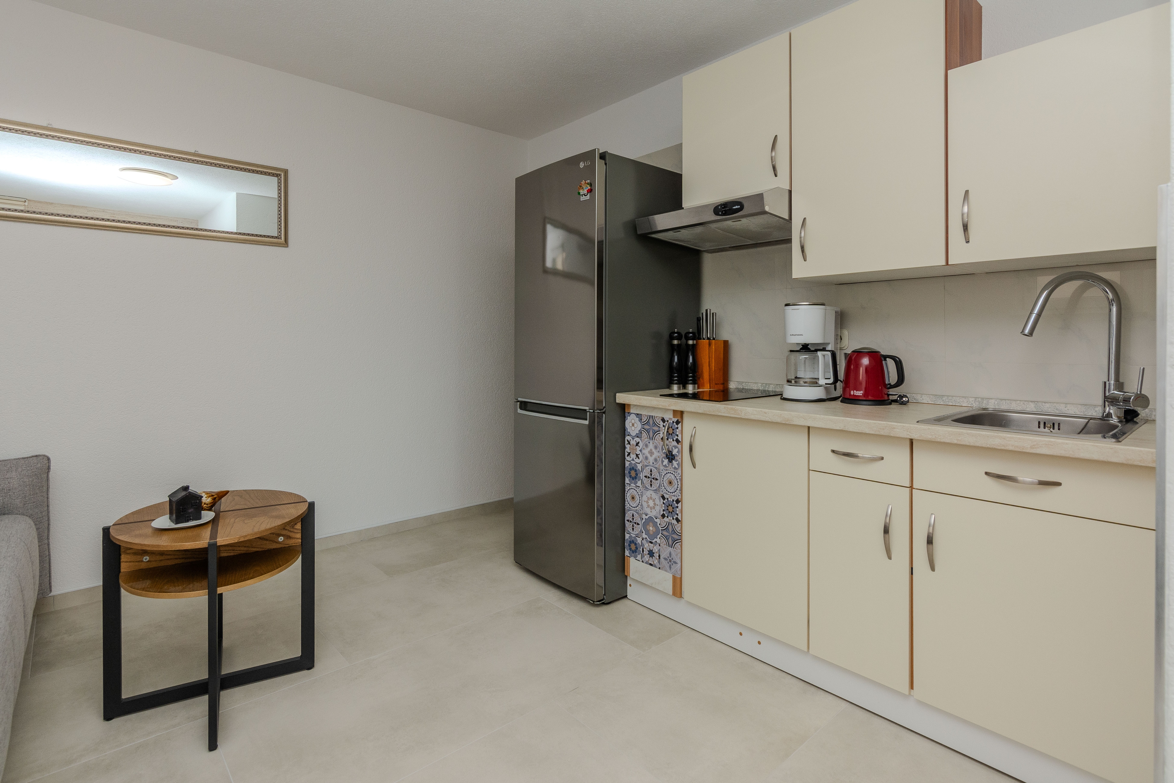 Apartment can accommodate 4 guests. Beds are situated in 1 sleeping rooms, but also in the living room, within 40m2. Guests can use a private terrace to enjoy the warm summer evenings. Food can be prepared using barbecue which is shared with other guests too. INCLUDED IN THE PRICE: tourist tax, final cleaning, air-conditioning, parking, internet, baby cot, hairdryer. OBLIGATORY ADDITIONAL COSTS: short stay fee (surcharge depending on a number of booked nights: 30% - 1, 20% - 2, 10% - 3). The availability of additional services for your chosen dates of stay, as well as their prices (if none are listed) must be checked ahead of time. Any additional services not shown in the price calculation are payable directly to the property owner and only if used by the visitor.