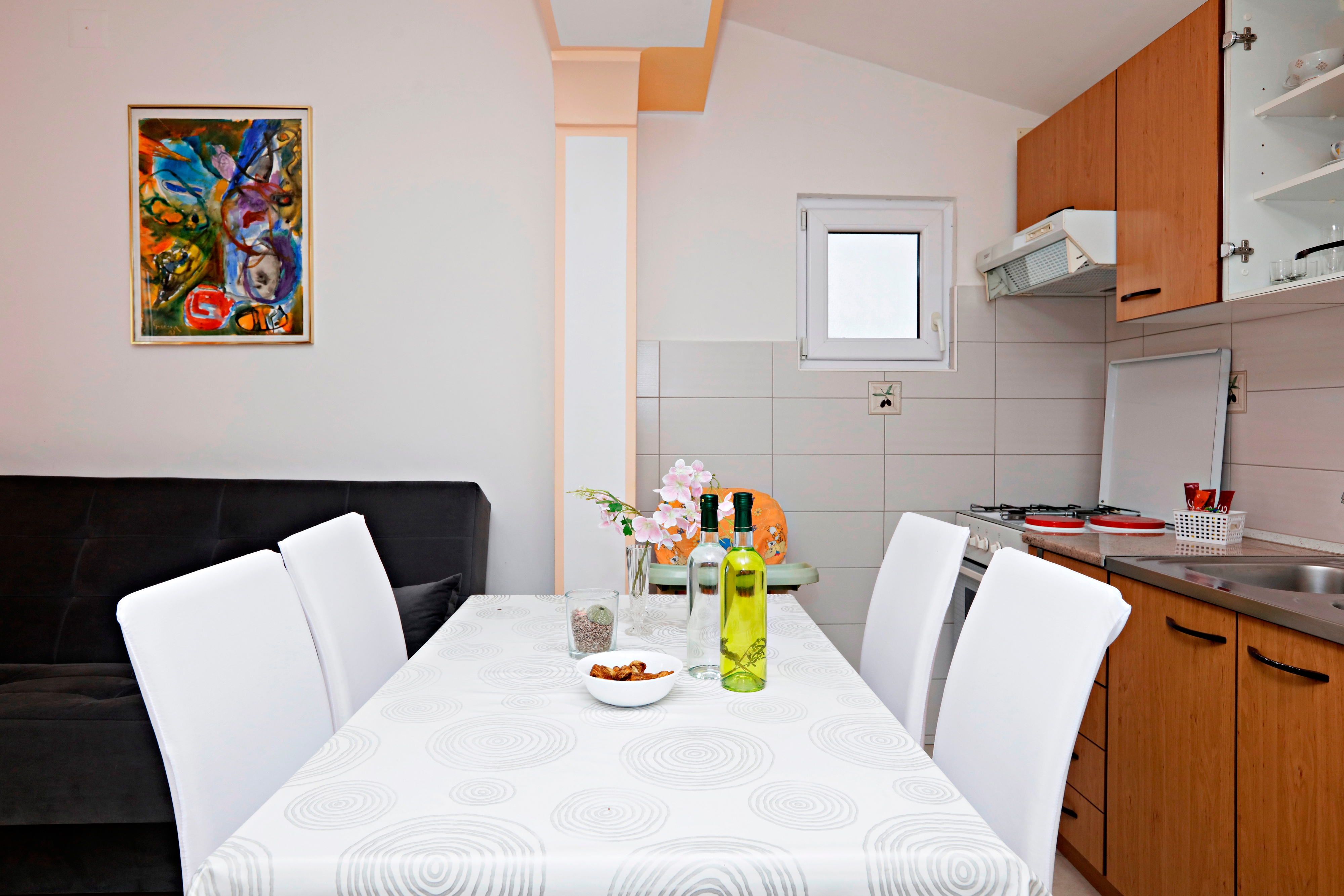 Apartment can accommodate 4 guests. Beds are situated in 1 sleeping rooms, but also in the living room, within 45m2. Guests can use a private terrace to enjoy the warm summer evenings. Food can be prepared using barbecue which is shared with other guests too. This accommodation unit welcomes pets at no additional costs. INCLUDED IN THE PRICE: tourist tax, final cleaning, air-conditioning, parking, internet, laundry, boat mooring, pets, baby cot, iron, ironing board, hairdryer, 1 bed for children (included in the price). The availability of additional services for your chosen dates of stay, as well as their prices (if none are listed) must be checked ahead of time. Any additional services not shown in the price calculation are payable directly to the property owner and only if used by the visitor.