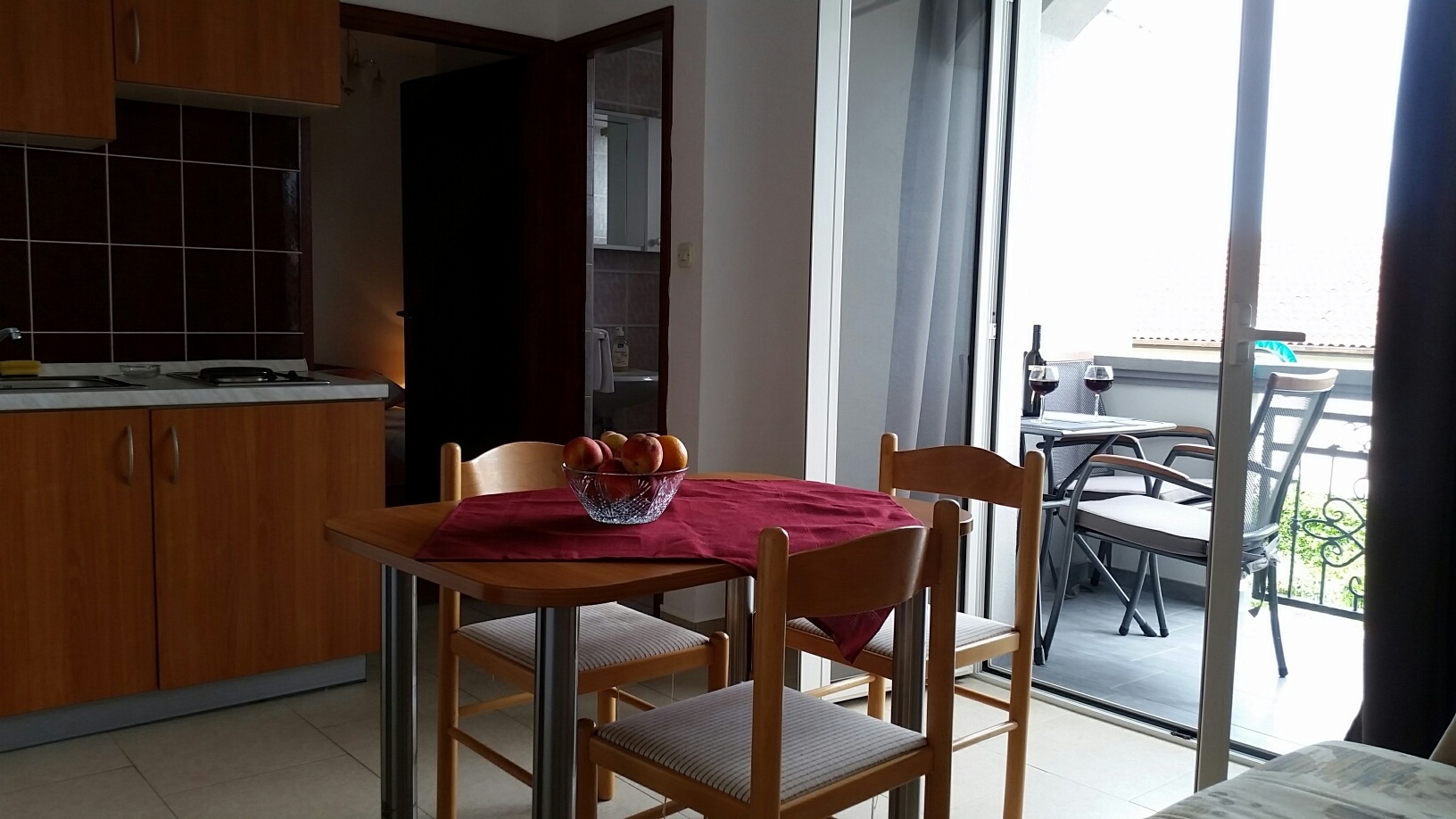 Apartment can accommodate 4 guests. Beds are situated in 1 sleeping rooms, but also in the dining room, within 30m2. Guests can use a private balcony to enjoy the warm summer evenings. Food can be prepared using barbecue which is shared with other guests too. This accommodation unit welcomes pets at an additional charge. INCLUDED IN THE PRICE: tourist tax, final cleaning, air-conditioning, parking, internet, iron, ironing board. OBLIGATORY ADDITIONAL COSTS: short stay fee (surcharge depending on a number of booked nights: 30% - 1, 20% - 2, 10% - 3). OPTIONAL ADDITIONAL COSTS: pets (€10.00 per night). The availability of additional services for your chosen dates of stay, as well as their prices (if none are listed) must be checked ahead of time. Any additional services not shown in the price calculation are payable directly to the property owner and only if used by the visitor.